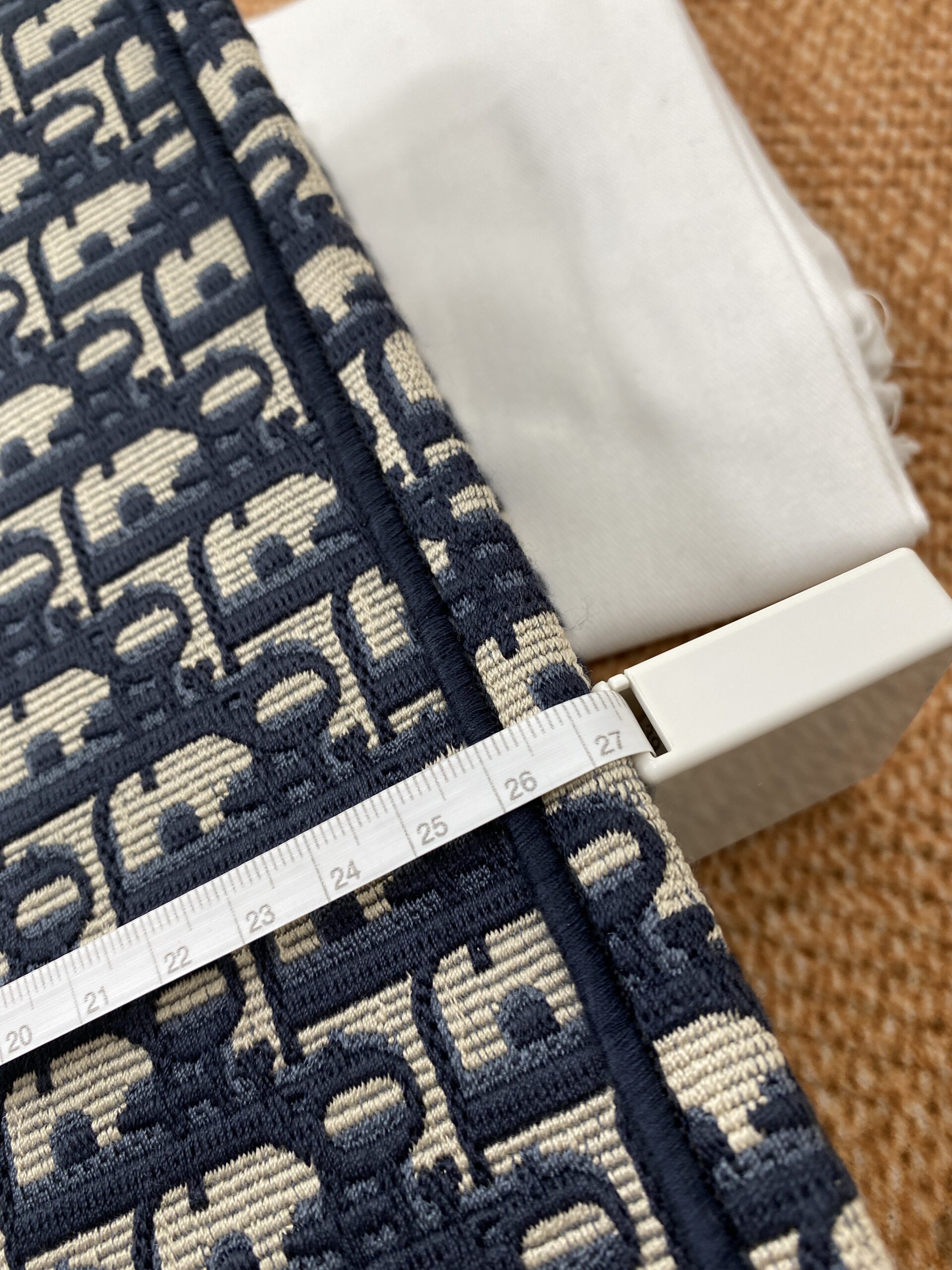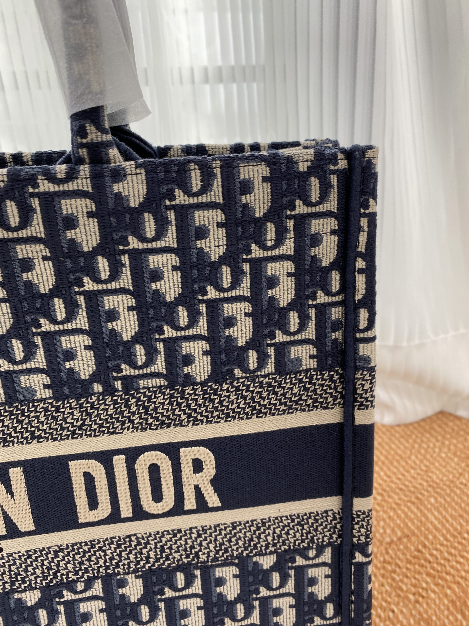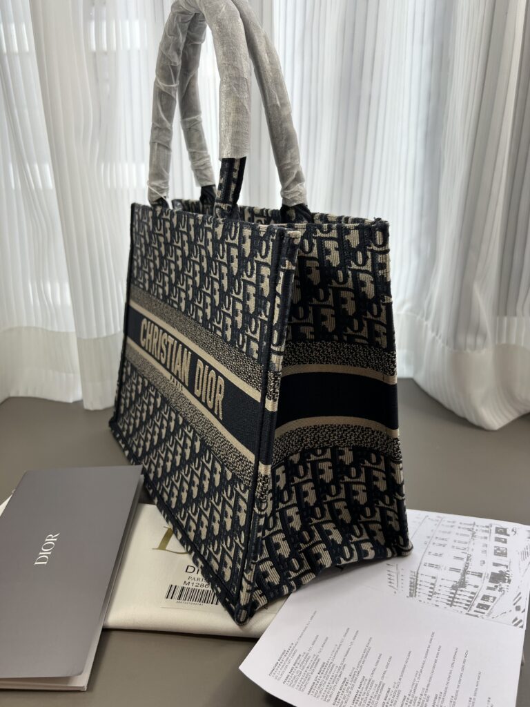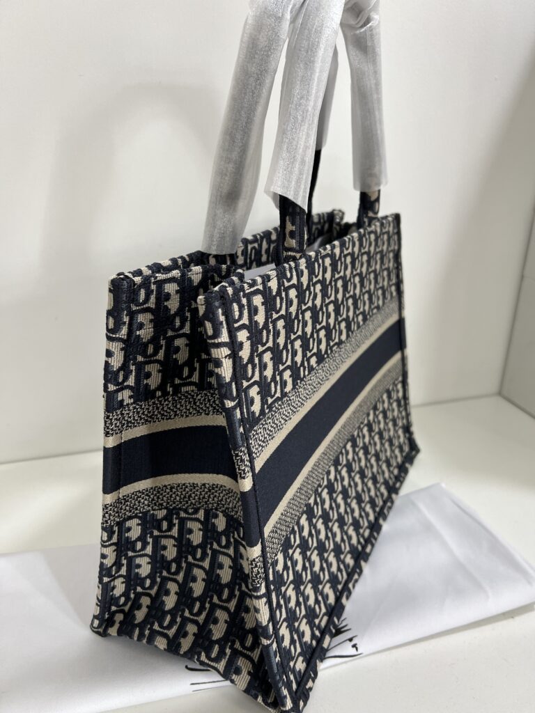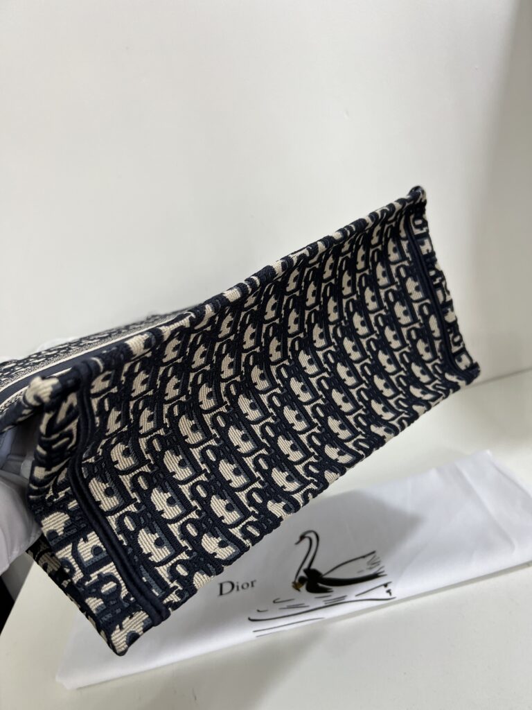 素材は厚手のエンブロイダリーキャンバスで、1967年にマルク・ボアンが制作したグラフィカルパターン「ディオール オブリーク(DIOR OBLIQUE)」を使用したデザインがシグネチャー。クラシカルな雰囲気も漂わせます。