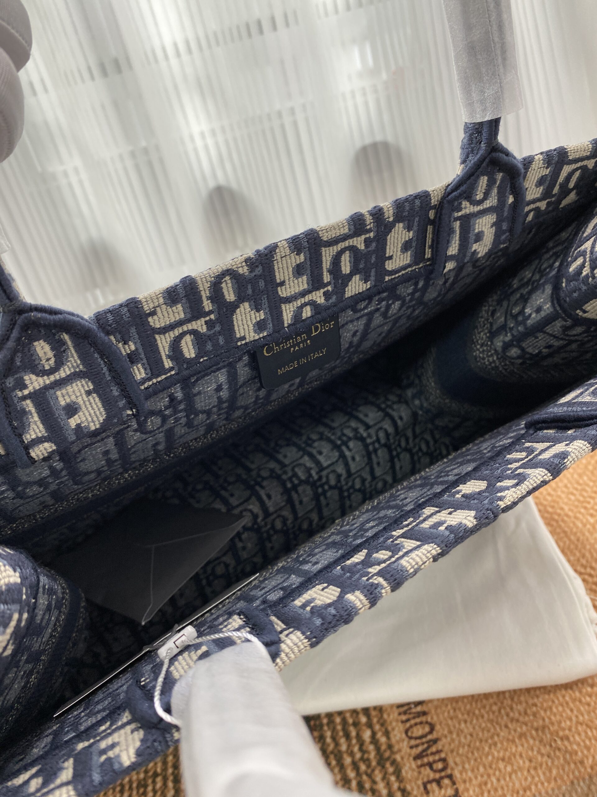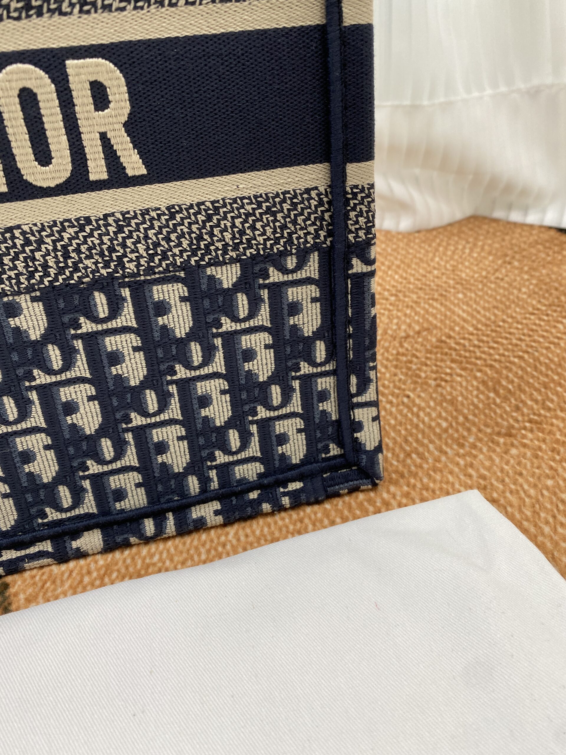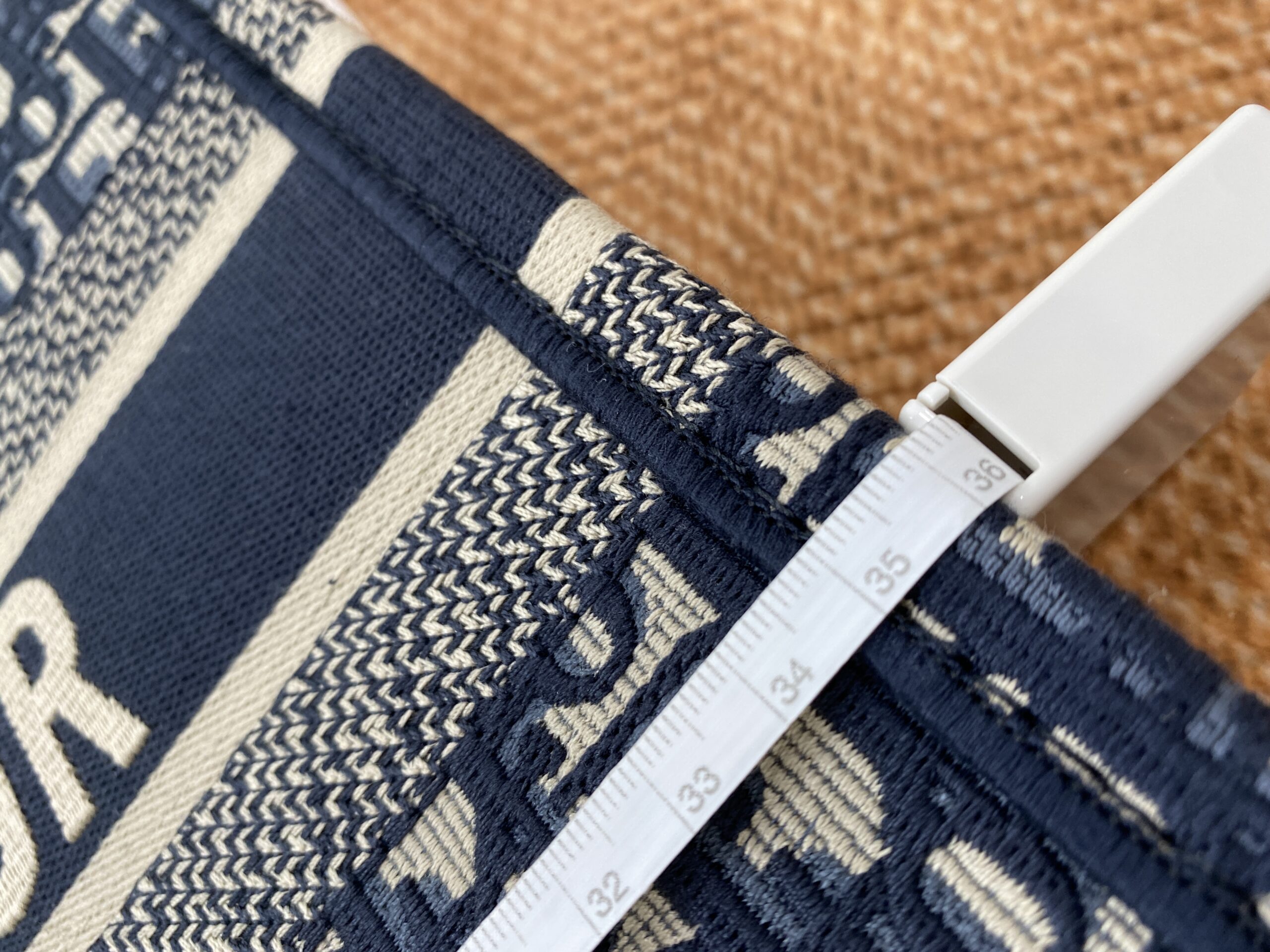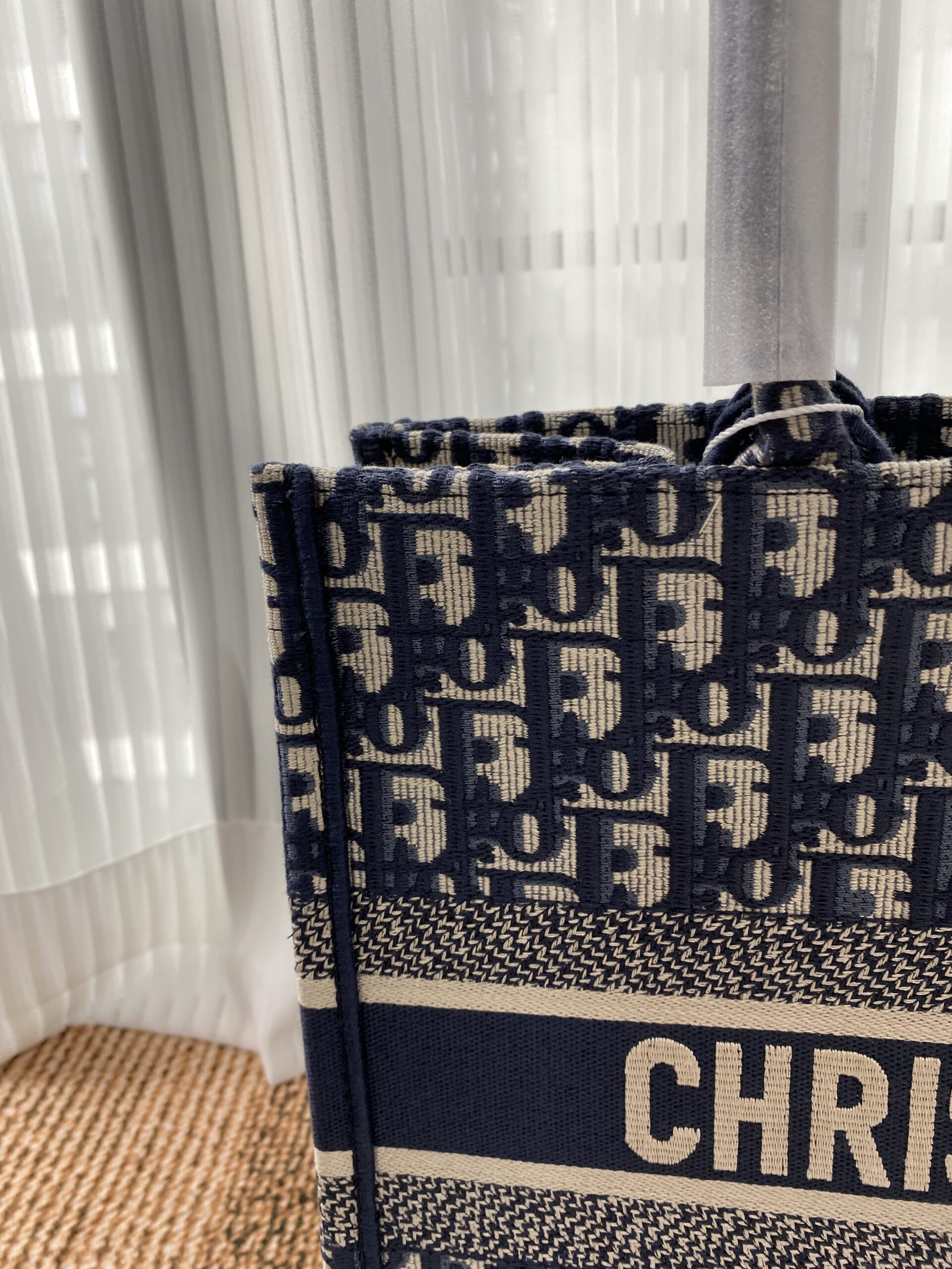 素材は厚手のエンブロイダリーキャンバスで、1967年にマルク・ボアンが制作したグラフィカルパターン「ディオール オブリーク(DIOR OBLIQUE)」を使用したデザインがシグネチャー。クラシカルな雰囲気も漂わせます。