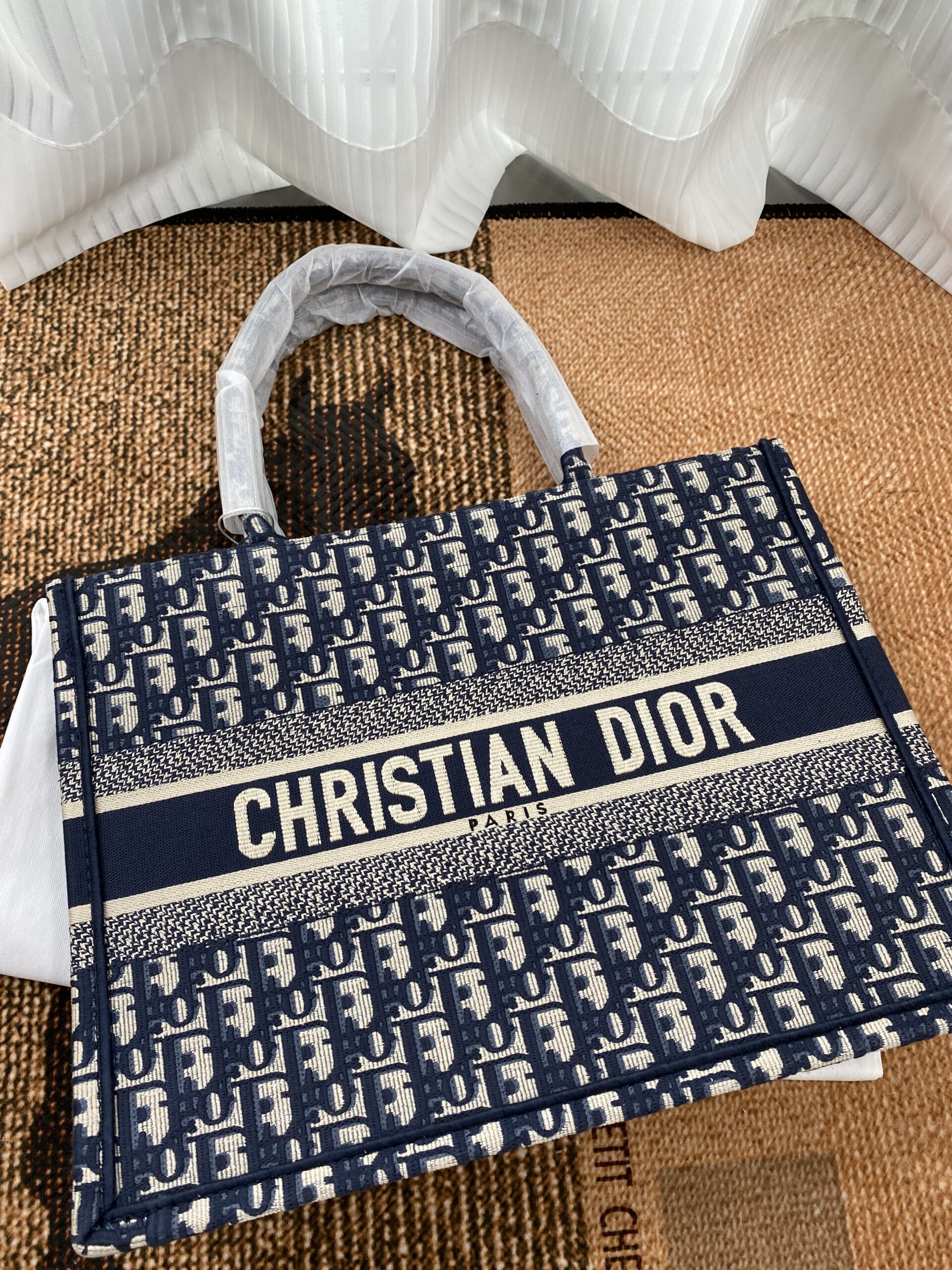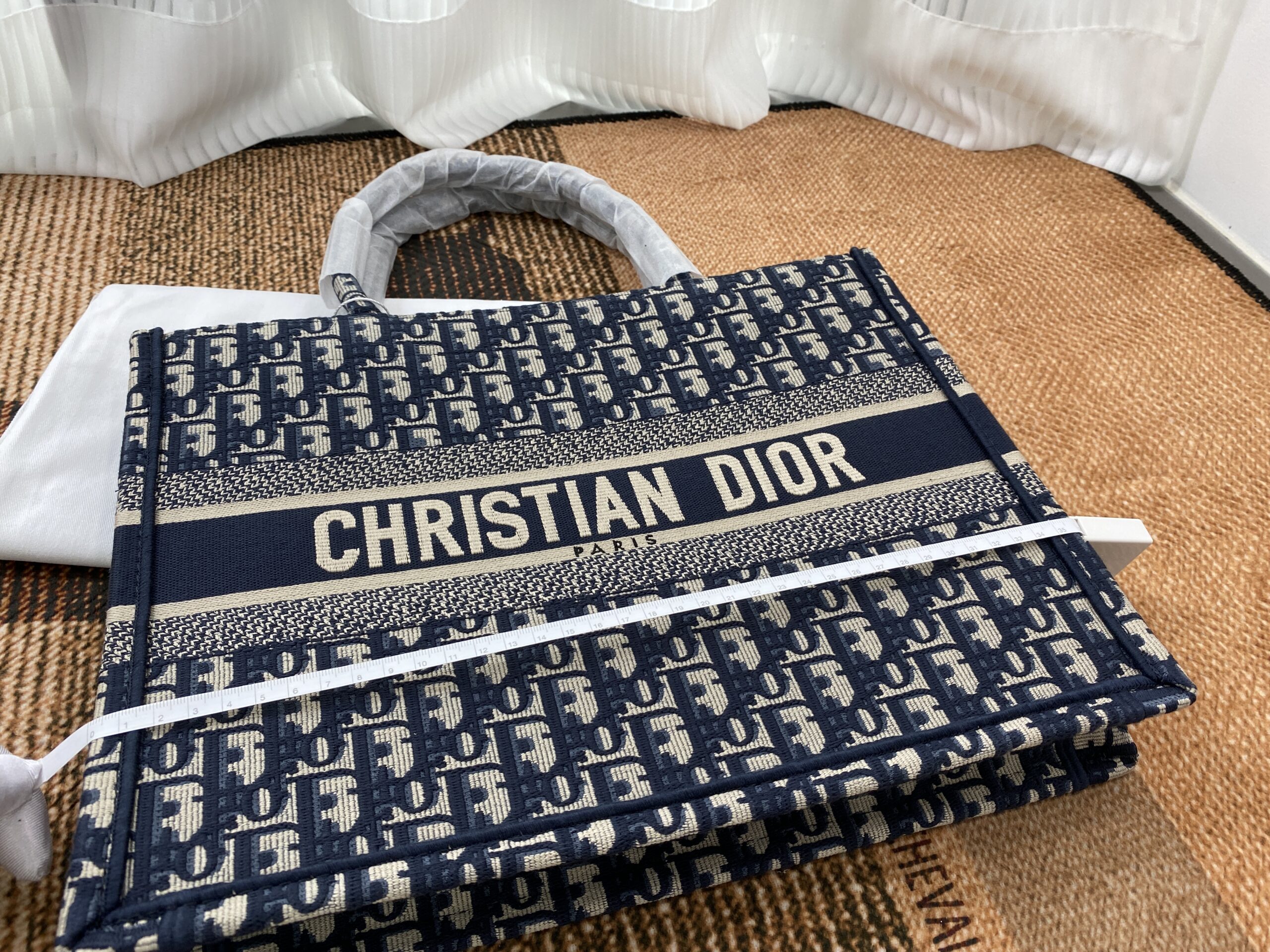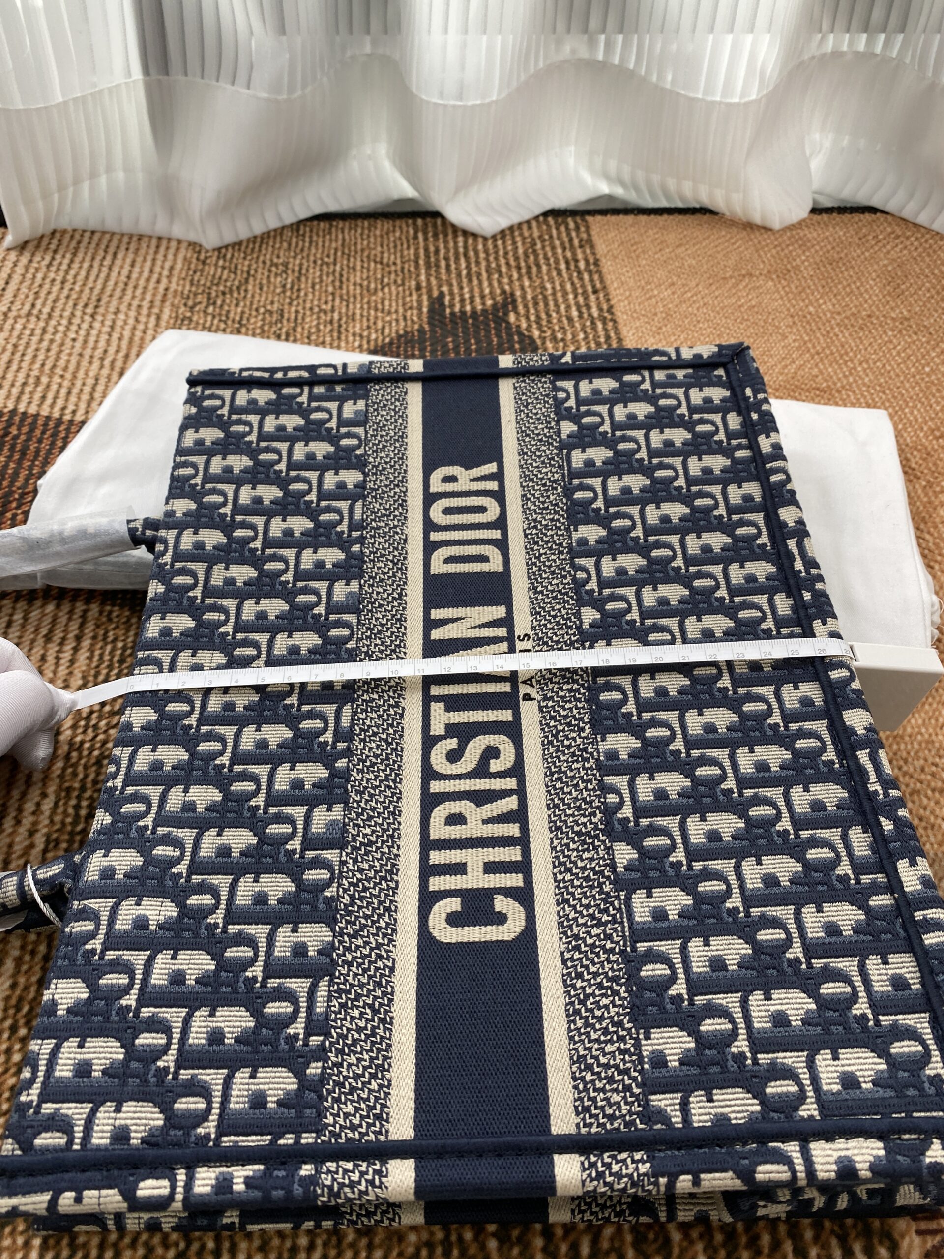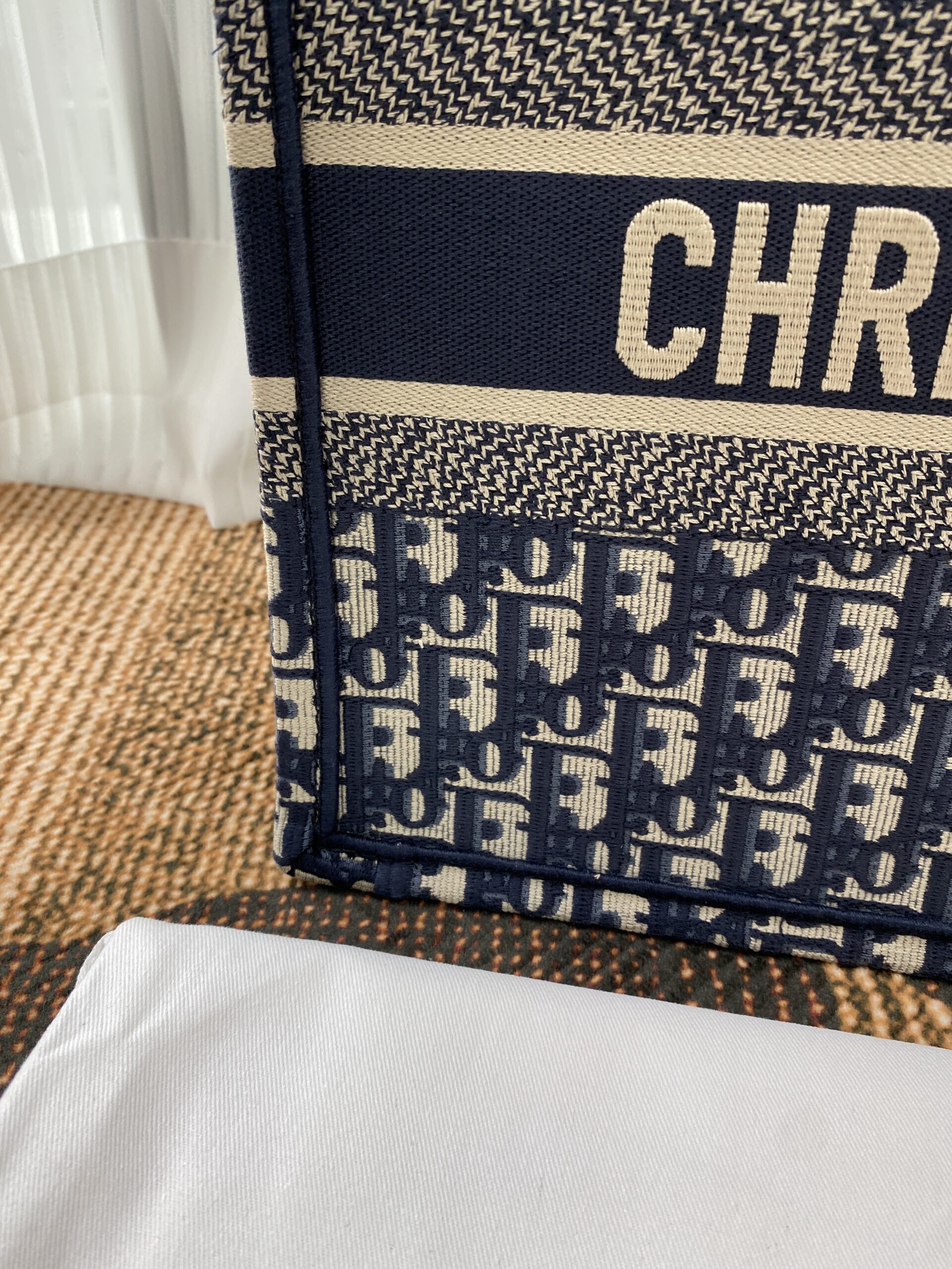 素材は厚手のエンブロイダリーキャンバスで、1967年にマルク・ボアンが制作したグラフィカルパターン「ディオール オブリーク(DIOR OBLIQUE)」を使用したデザインがシグネチャー。クラシカルな雰囲気も漂わせます。