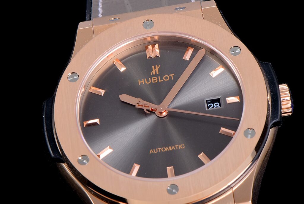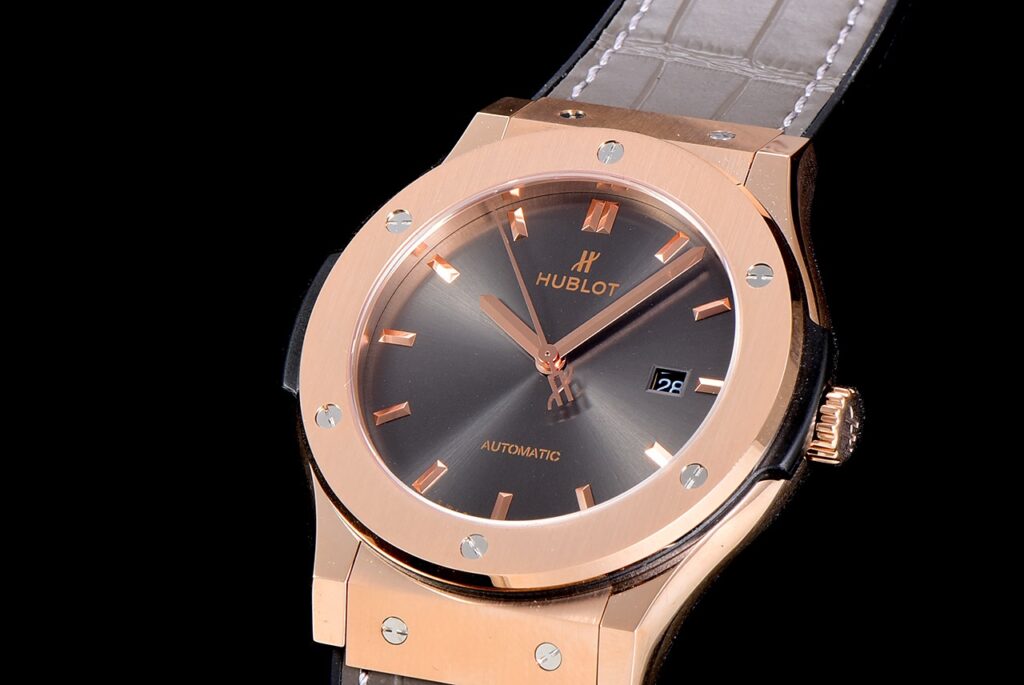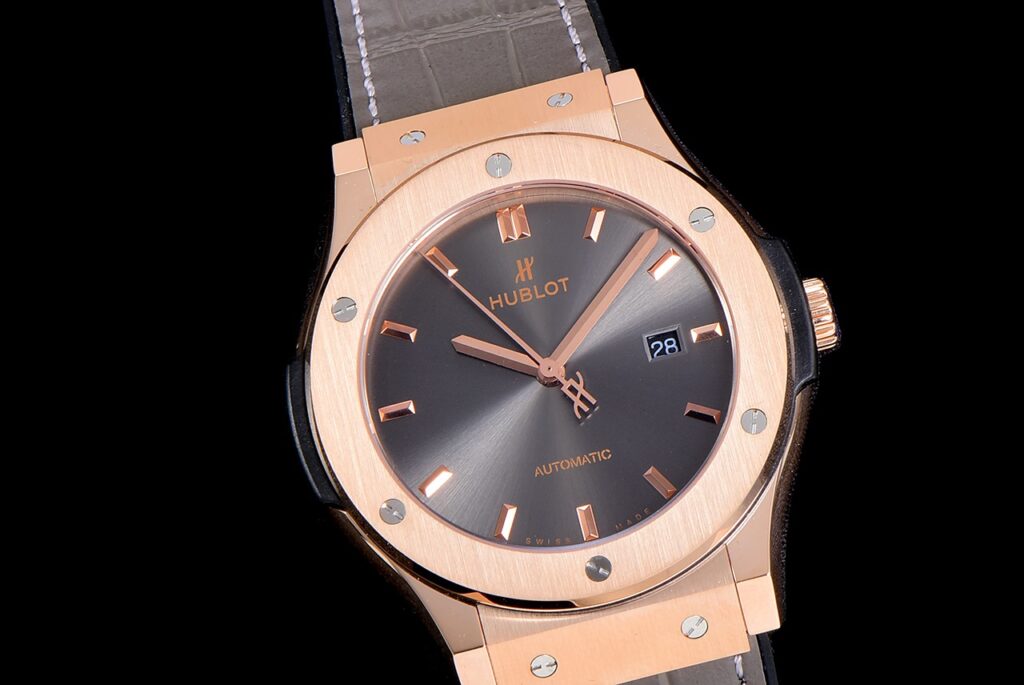 フランス語の舷窓に由来する「ウブロ」は、デザイン性と革新的な素材使いにより、新興メーカーながら、一躍ステータスブランドの仲間入りを果たした。ウォッチメゾンの礎と成した名品のオマージュとして、2008年に投入されたのが「クラシックフュージョン」である。フュージョン(融合)とは原点と現代を繋ぐという意味合いが込められ、クラシックのデザインや風合いを受け継ぎながら、驚くほどモダンにスタイリングされている。継承される共通のアイコンが、ベゼルを固定するためのビス。以前の12本から8本となり、舷窓のイメージは今もしっかりと息づいている。