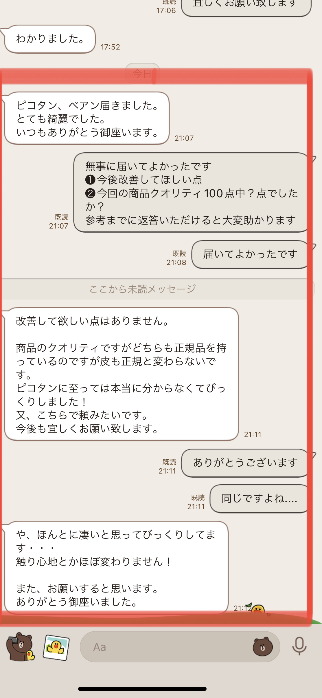 お客様からの評価 2021.10月常連のお客様から評価いただきました。いつもありがとうございます。