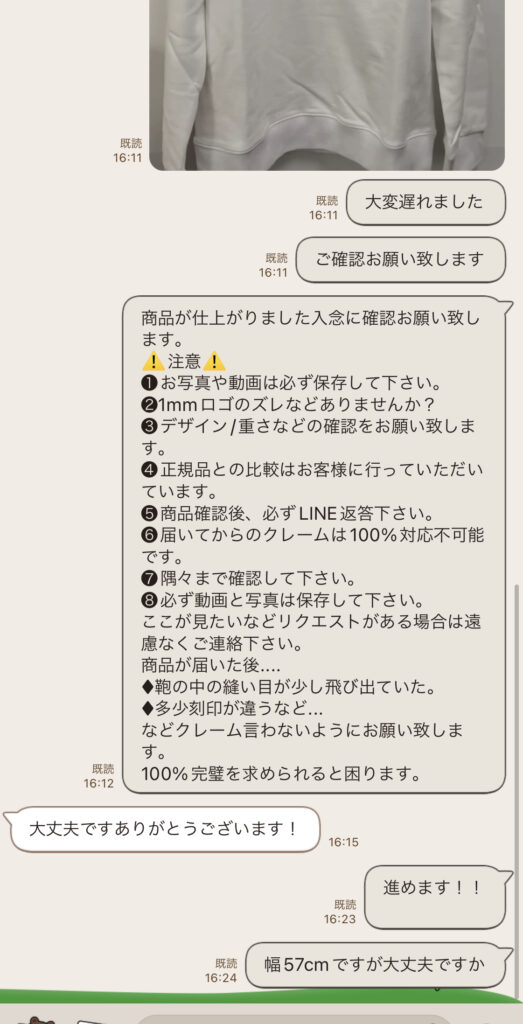 2021.11月『お客様とのやりとり』ラインで お一人様ずつ丁寧に取引させていただいてます、細かいすり合わせは、LINEにご連絡下さい。