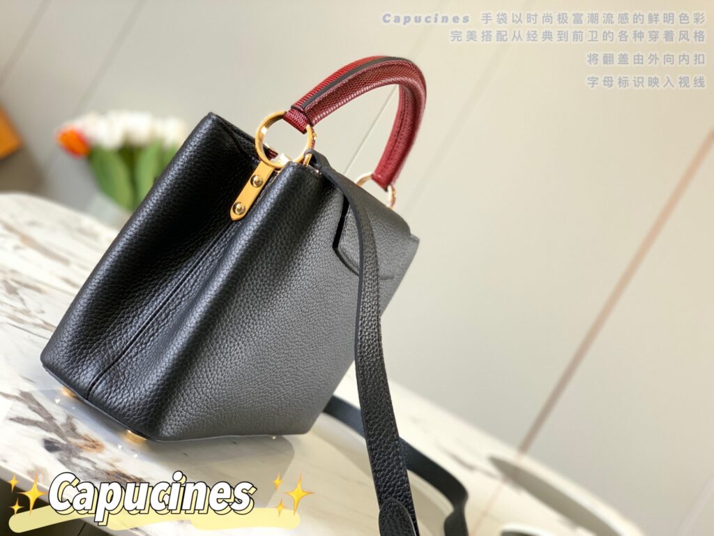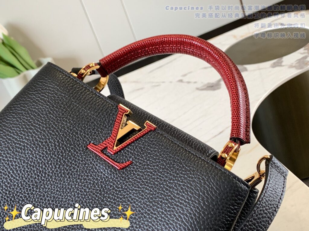 カプシーヌは、1854年にルイ・ヴィトンが始めて出店したパリのカプシーヌ通りのネーミングが由来のフラップ付きハンドバッグ。台形型のフォルムとシンプルでクラシカルなルックスが特徴のカプシーヌは、丸みを帯びたトップハンドルとハンドルをつなぐ美しいリングがとてもエレガント!そしてなんといっても、バッグの開口部分にかたどられたLVのロゴのシグネチャーが、カプシーヌの大きな魅力となっています。