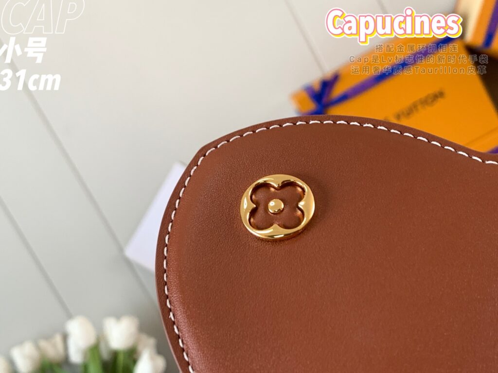 カプシーヌは、1854年にルイ・ヴィトンが始めて出店したパリのカプシーヌ通りのネーミングが由来のフラップ付きハンドバッグ。台形型のフォルムとシンプルでクラシカルなルックスが特徴のカプシーヌは、丸みを帯びたトップハンドルとハンドルをつなぐ美しいリングがとてもエレガント!そしてなんといっても、バッグの開口部分にかたどられたLVのロゴのシグネチャーが、カプシーヌの大きな魅力となっています。