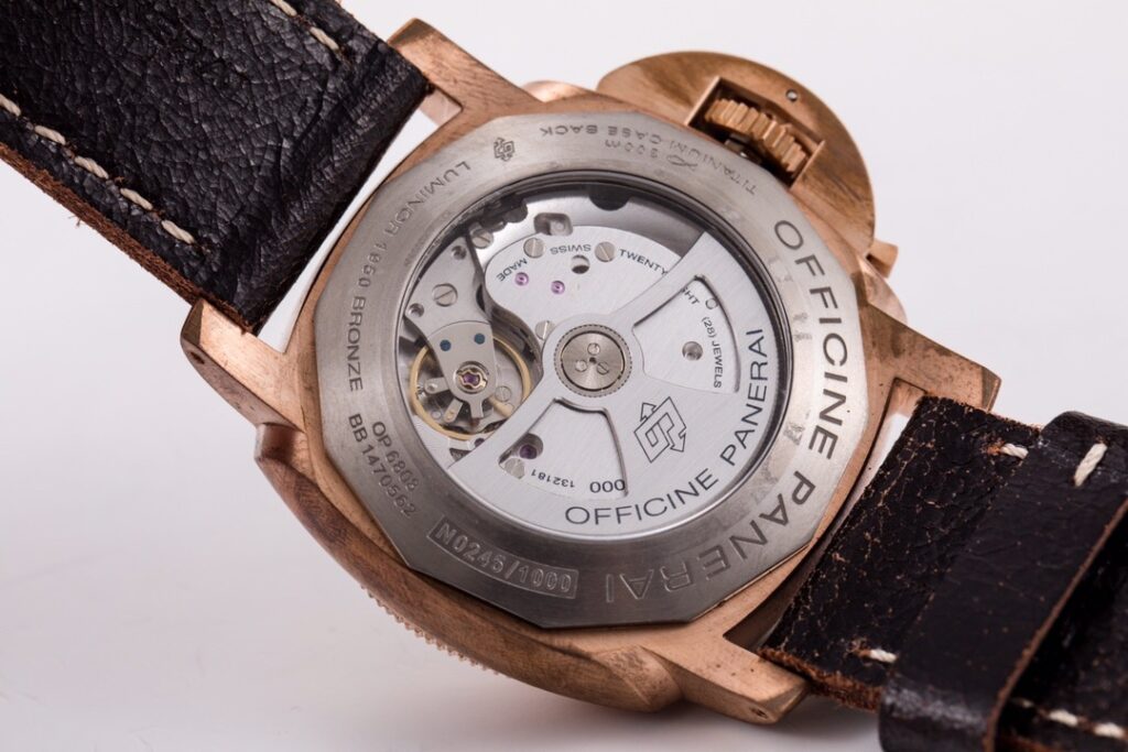 経年変化によって無二の1本となっていく過程を楽しんでいただけるブロンズをケース素材としたルミノール サブマーシブル 1950 3デイズ オートマティック ブロンゾ。ブルーの文字盤が良く映える美しいモデルです。