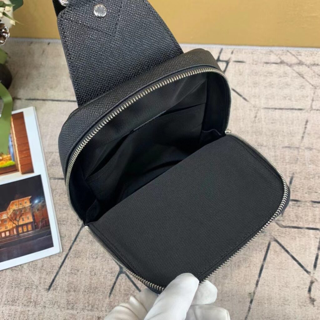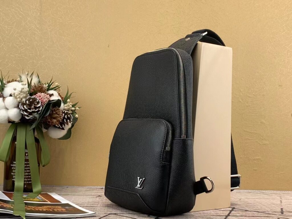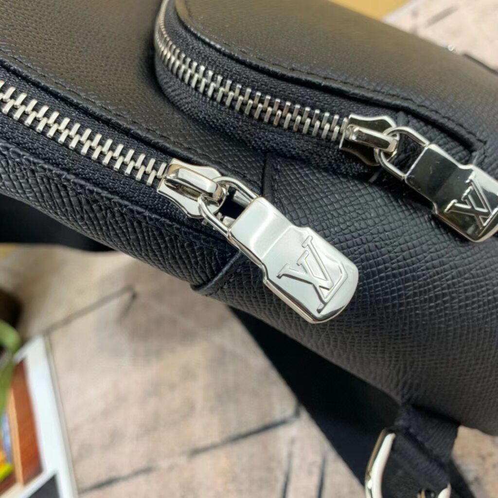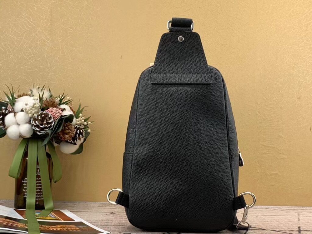 タイガ・レザーの「アヴェニュー・スリングバッグ」。シルバーカラーのLV イニシャルが光彩を放つ、定番のパックパックに代わるスタイリッシュなアイテムです。特徴的なシェイプと調節可能なストラップはこのアイテムの個性を特徴付けるディテール。調節可能なストラップは、ボディに付いた2つのストラップフックによって、左右どちらの肩にも掛けることができる仕立てです。ファスナー付きフロントポケットのほか、内側にもフラットポケットを備えた機能性の高さも魅力です。