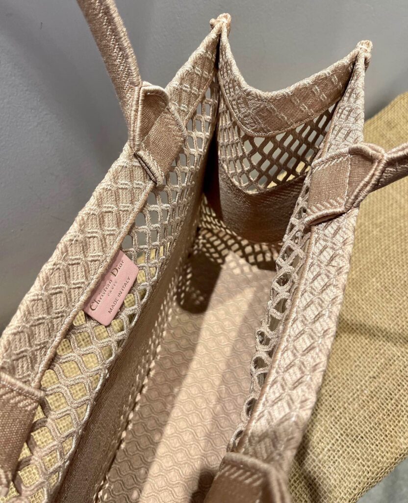 素材は厚手のエンブロイダリーキャンバスで、1967年にマルク・ボアンが制作したグラフィカルパターン「ディオール オブリーク(DIOR OBLIQUE)」を使用したデザインがシグネチャー。クラシカルな雰囲気も漂わせます。