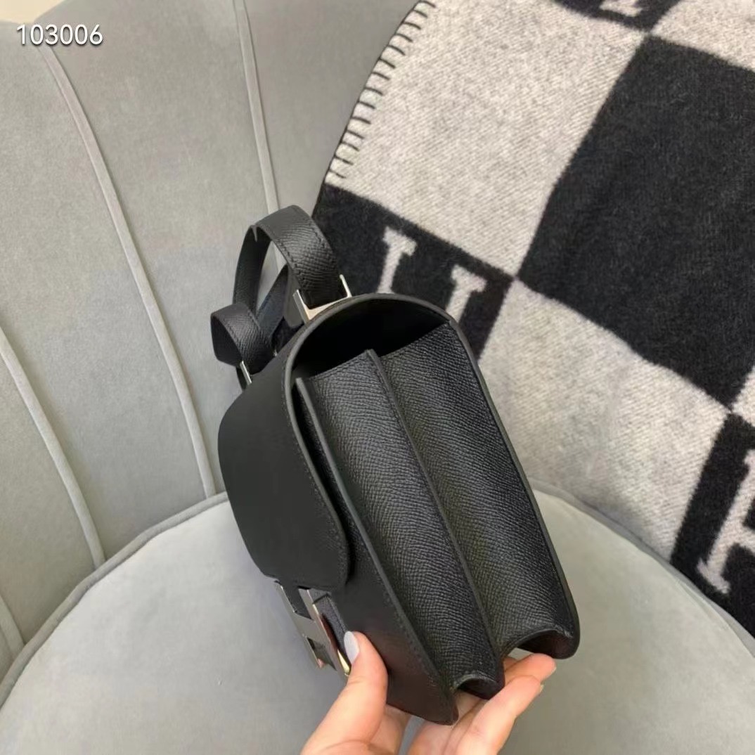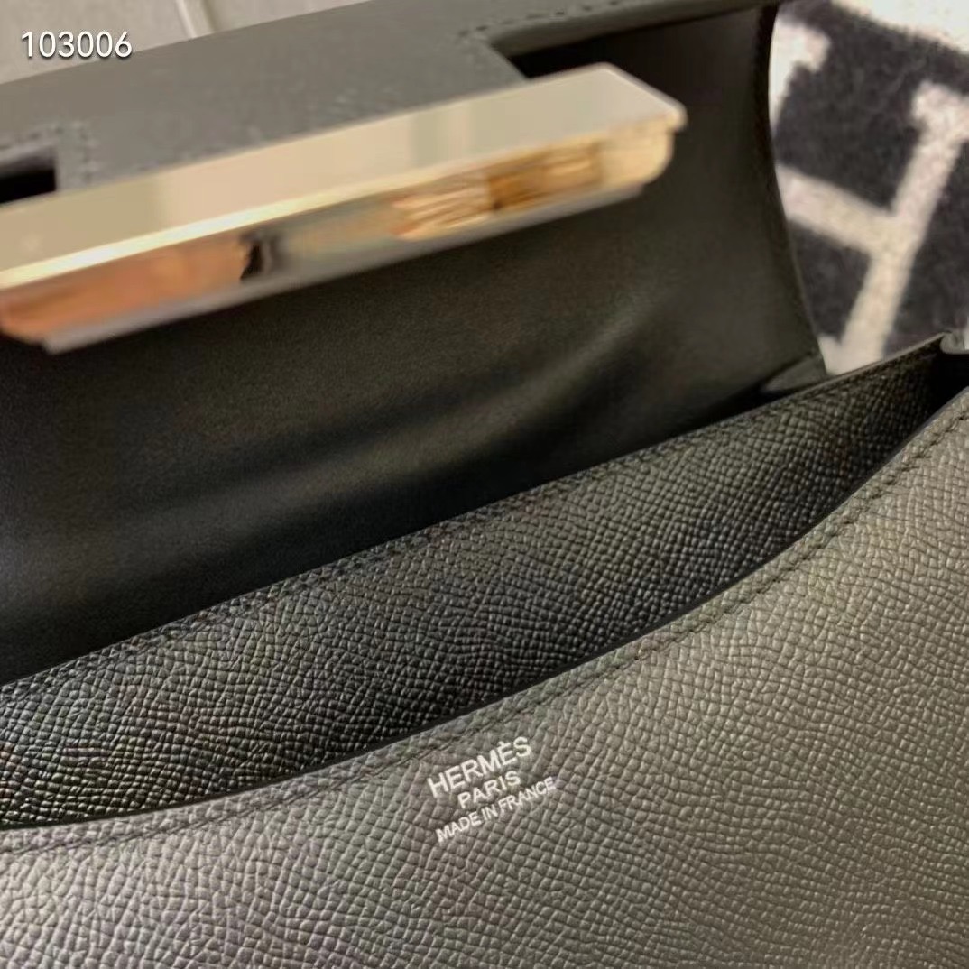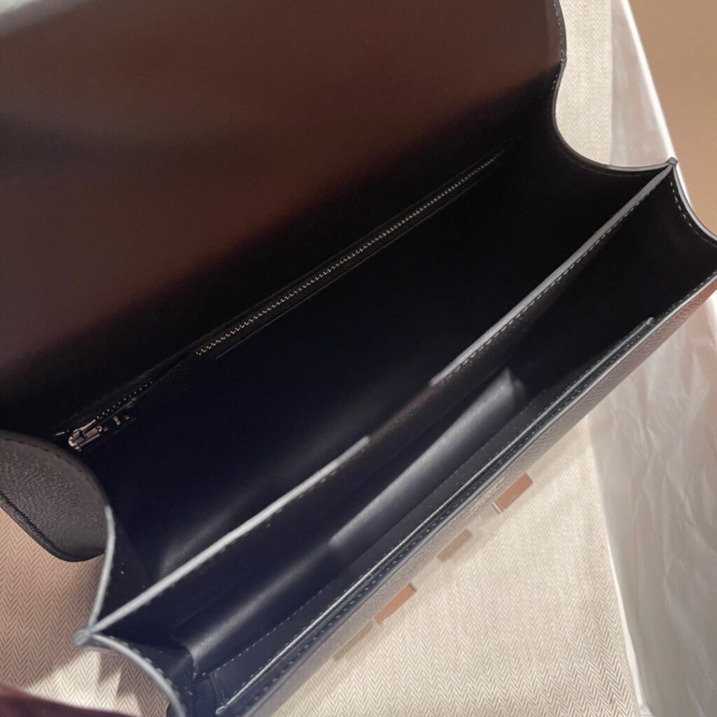 正方形の中にも丸みがある《コンスタンス》はシンプルの極みで、同時に矛盾を楽しめるバッグでもあります。長方形の《コンスタンス》は角が丸く、そのフラップにはソフトな表情を湛えます。2つのマチの部分には空気感があり、バンドリエールは自在に調節できます。