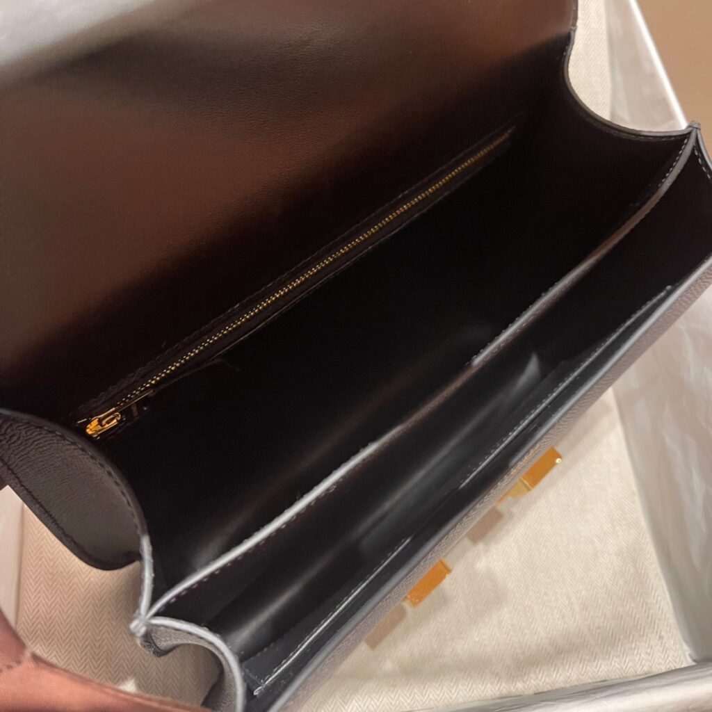 正方形の中にも丸みがある《コンスタンス》はシンプルの極みで、同時に矛盾を楽しめるバッグでもあります。長方形の《コンスタンス》は角が丸く、そのフラップにはソフトな表情を湛えます。2つのマチの部分には空気感があり、バンドリエールは自在に調節できます。
