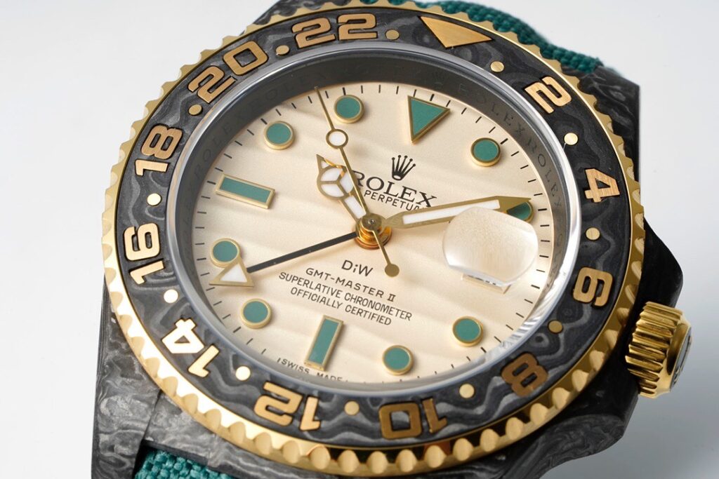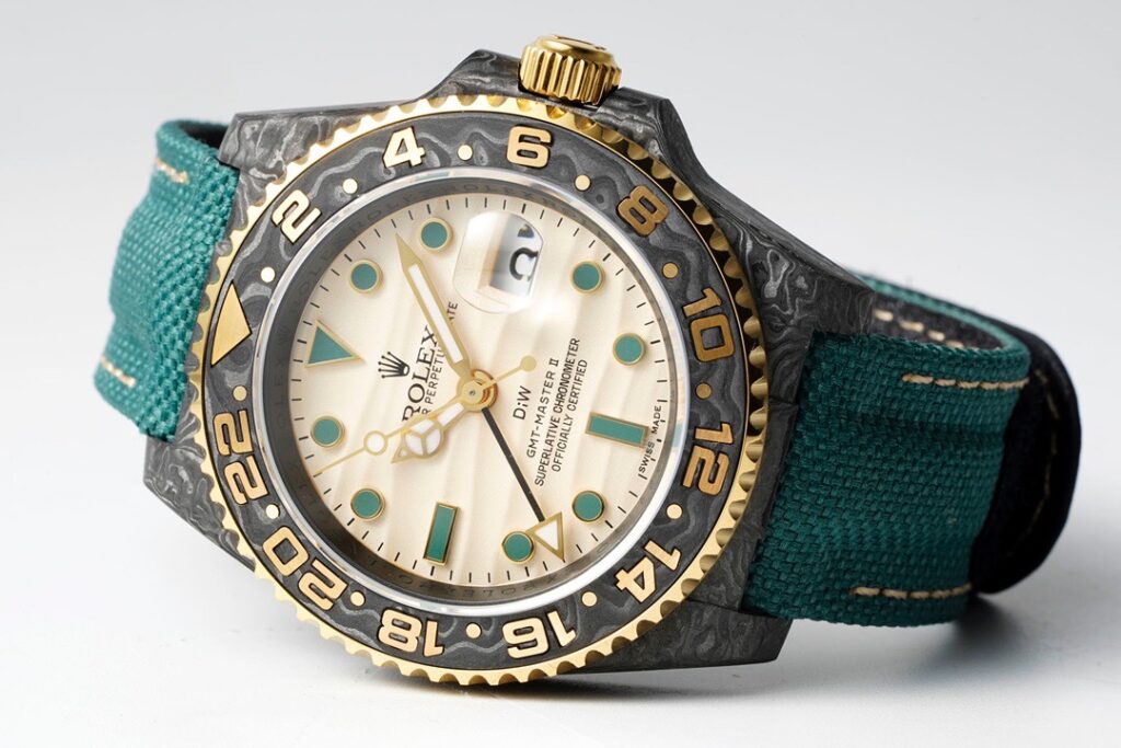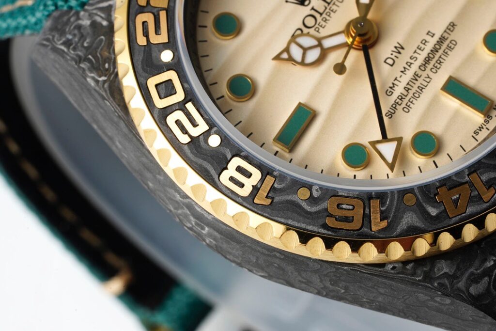 今回発売されたロレックスGMT-Master IIをベースにしたカスタムコレクションは、ベースモデルの特徴を残しつつ、ケースをカーボンファイバーへとアップグレードしたハイエンドモデル。