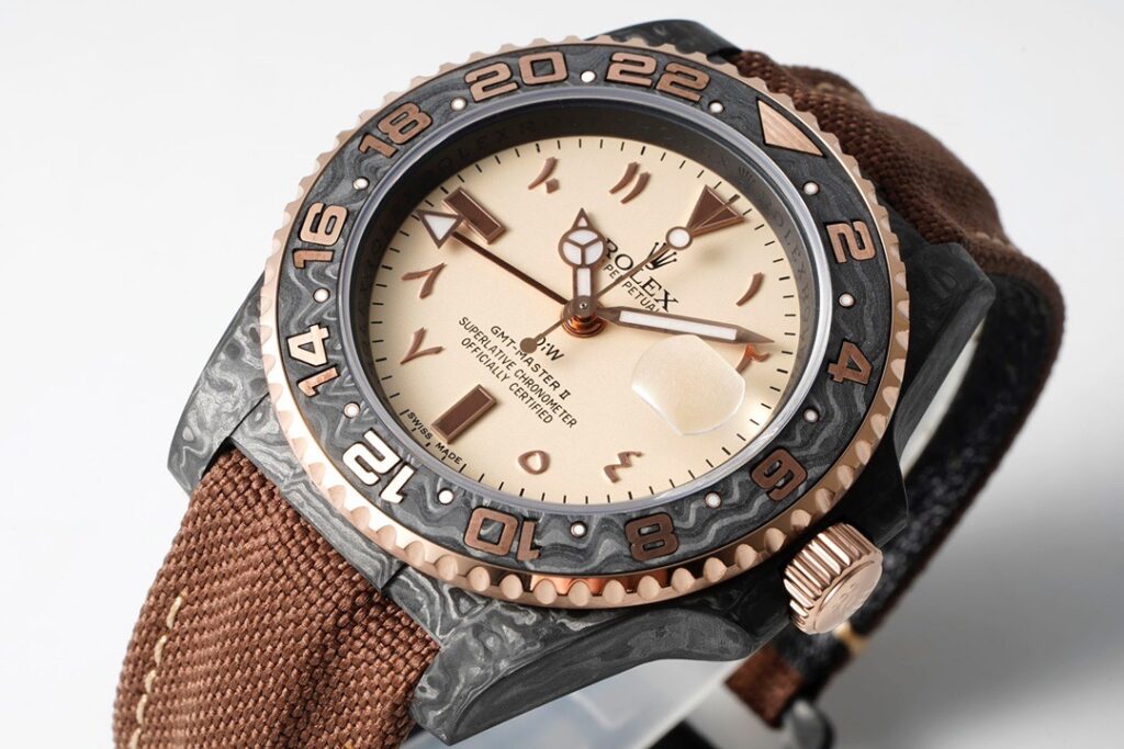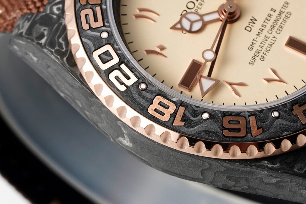 今回発売されたロレックスGMT-Master IIをベースにしたカスタムコレクションは、ベースモデルの特徴を残しつつ、ケースをカーボンファイバーへとアップグレードしたハイエンドモデル。