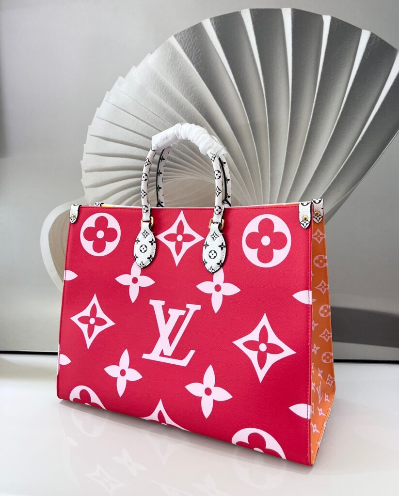 ハイブランドのトートバッグは数多くありますが、今シーズンのファッショニスタたちが揃って愛用しているのがルイヴィトンの「On the go(オンザゴー」です。かっちりとした直線的で型崩れしにくいフォルムに、話題となったジャイアントモノグラムなど様々な大きさのモノグラム柄が裏表に描かれた特徴的なデザイン。