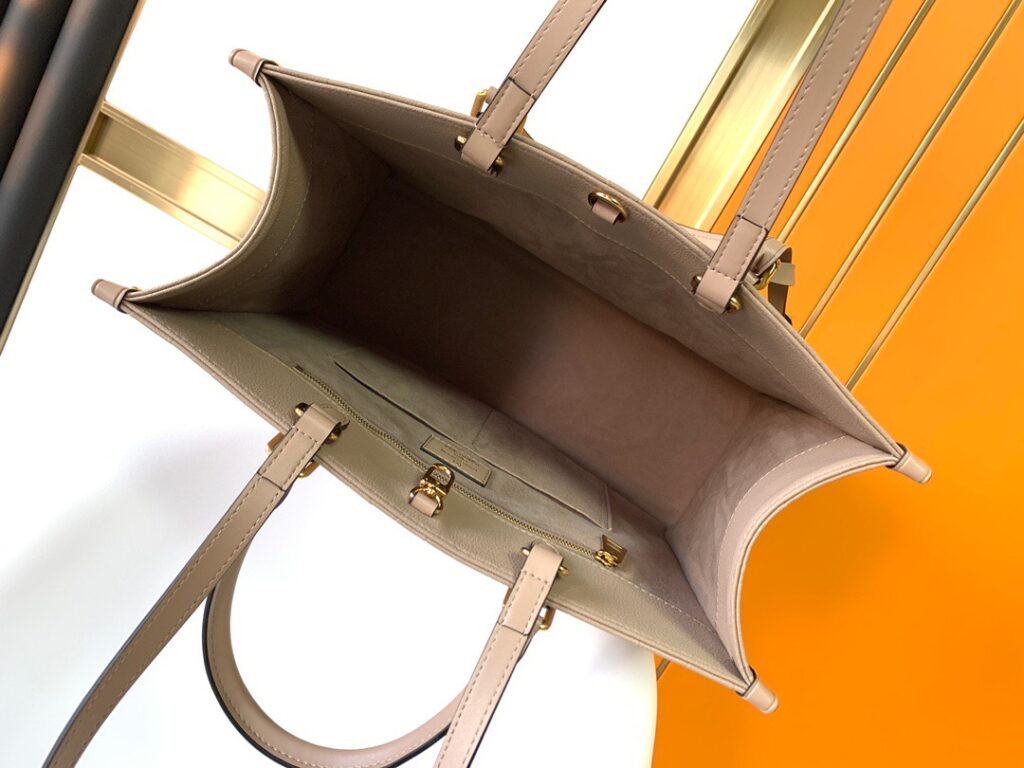 しっかりと荷物が入るトートバッグはカジュアルな印象を与えがちですが、エレガントな存在感を放つオンザゴーならそんな心配もご無用。デイリースタイルのクラスアップアイテムとしてもオススメです