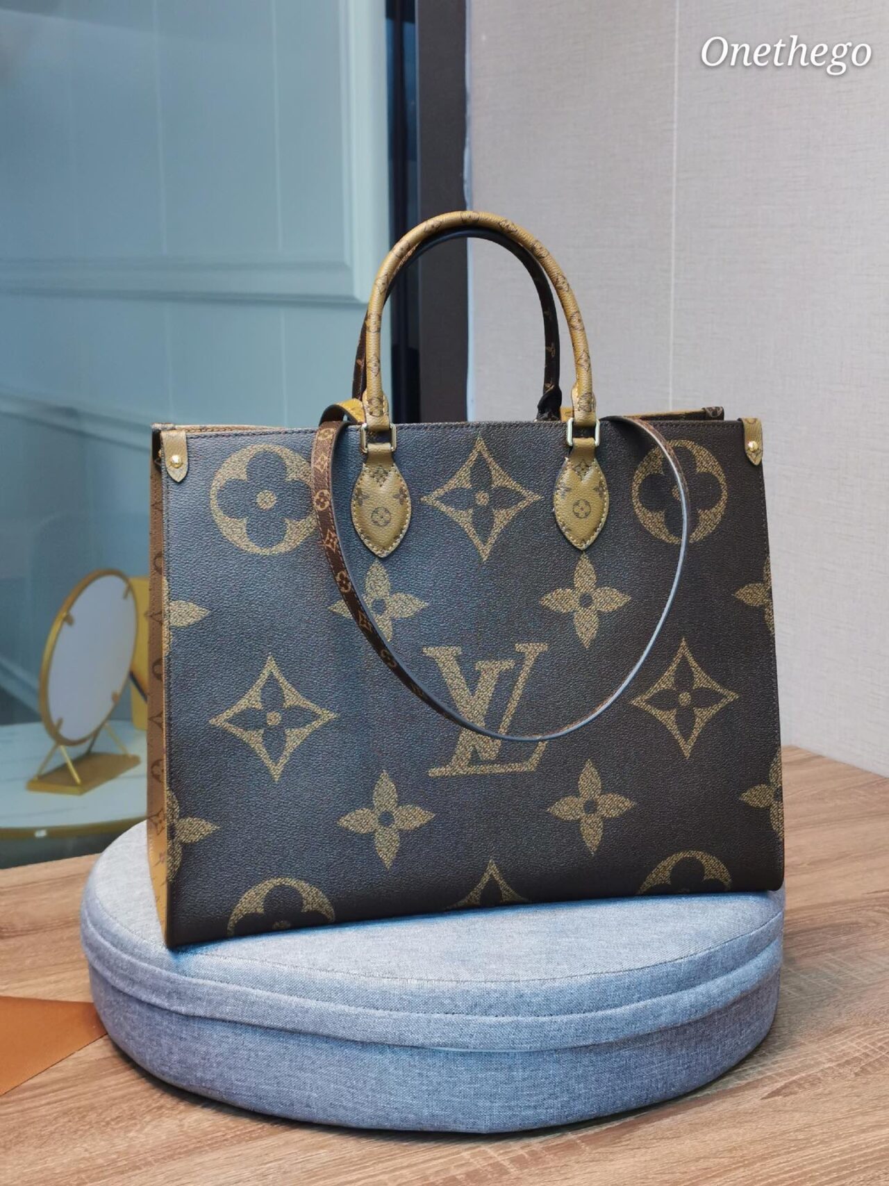 しっかりと荷物が入るトートバッグはカジュアルな印象を与えがちですが、エレガントな存在感を放つオンザゴーならそんな心配もご無用。デイリースタイルのクラスアップアイテムとしてもオススメです