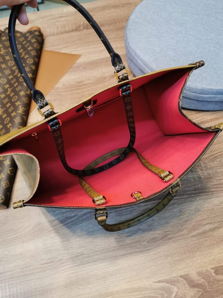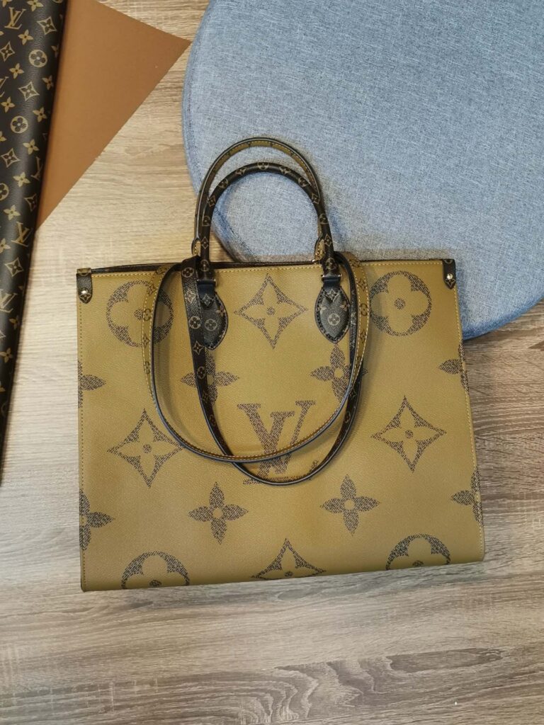 ハイブランドのトートバッグは数多くありますが、今シーズンのファッショニスタたちが揃って愛用しているのがルイヴィトンの「On the go(オンザゴー」です。かっちりとした直線的で型崩れしにくいフォルムに、話題となったジャイアントモノグラムなど様々な大きさのモノグラム柄が裏表に描かれた特徴的なデザイン。