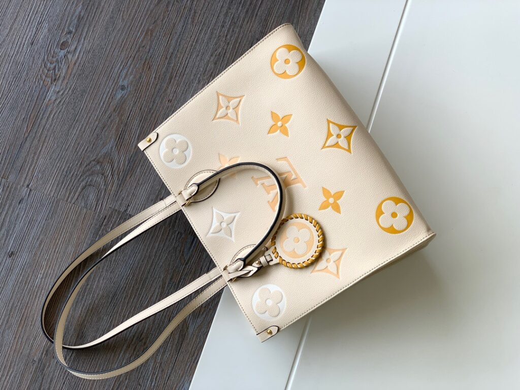 ハイブランドのトートバッグは数多くありますが、今シーズンのファッショニスタたちが揃って愛用しているのがルイヴィトンの「On the go(オンザゴー」です。かっちりとした直線的で型崩れしにくいフォルムに、話題となったジャイアントモノグラムなど様々な大きさのモノグラム柄が裏表に描かれた特徴的なデザイン。