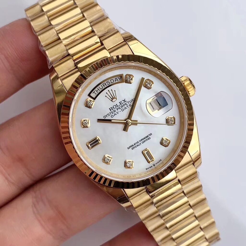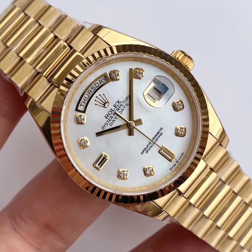 1956年、オイスター パーペチュアルデイデイトが誕生。世界で初めてダイアルの小窓に日付に加えて、フルスペルの曜日も表示する腕時計であった。このモデルのために特別にデザインされたプレジデントブレスレットを備えたデイデイトは、ロレックスの名声と卓越性を体現している。