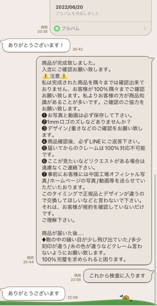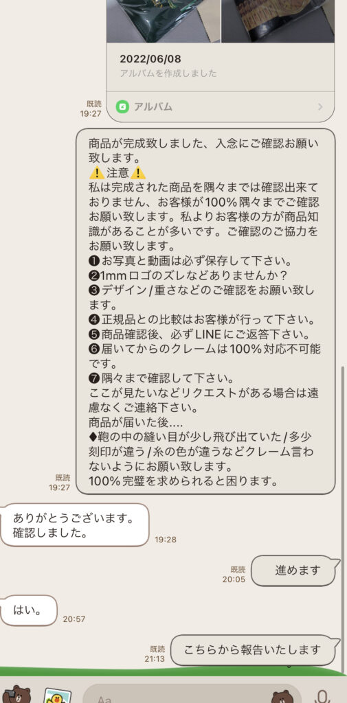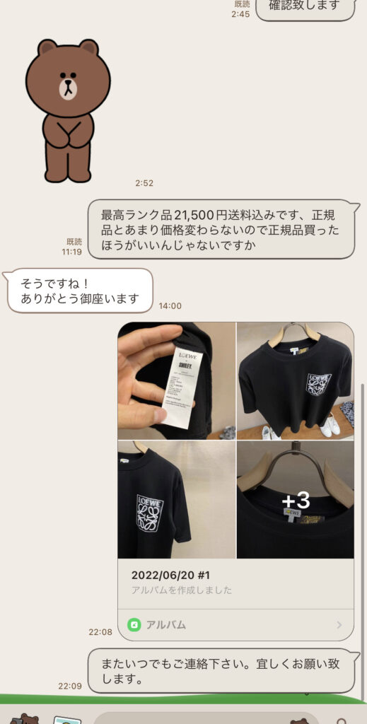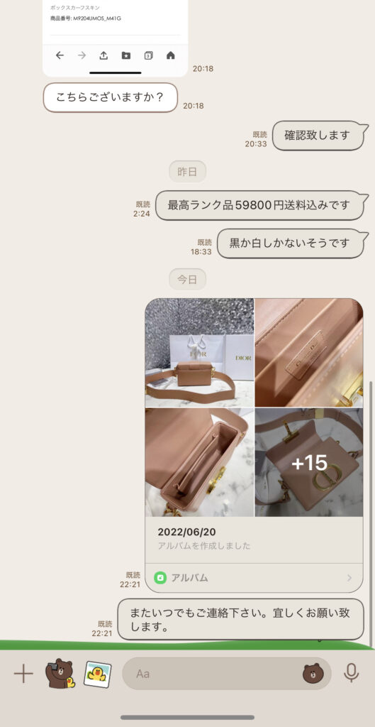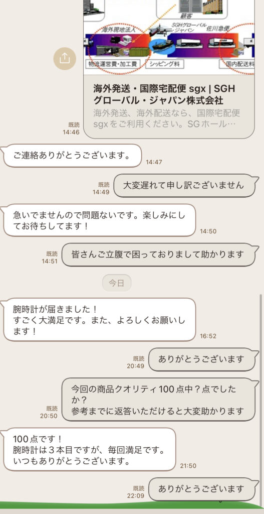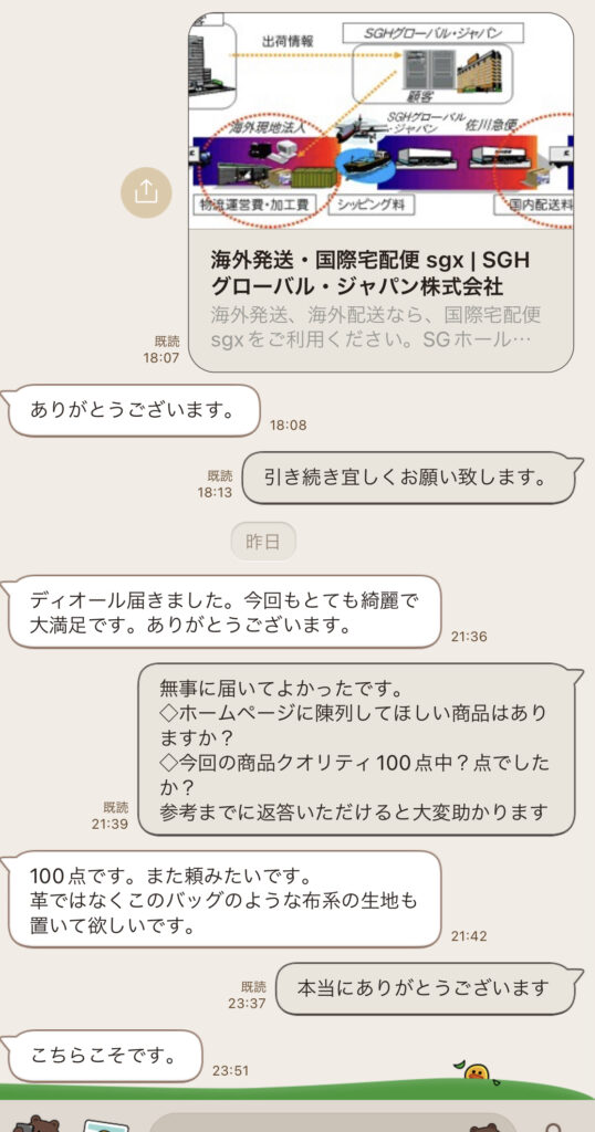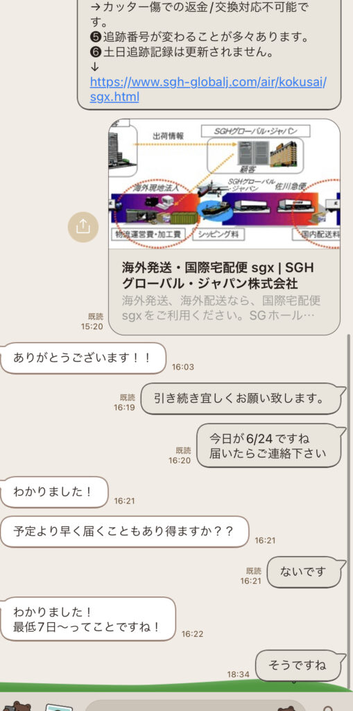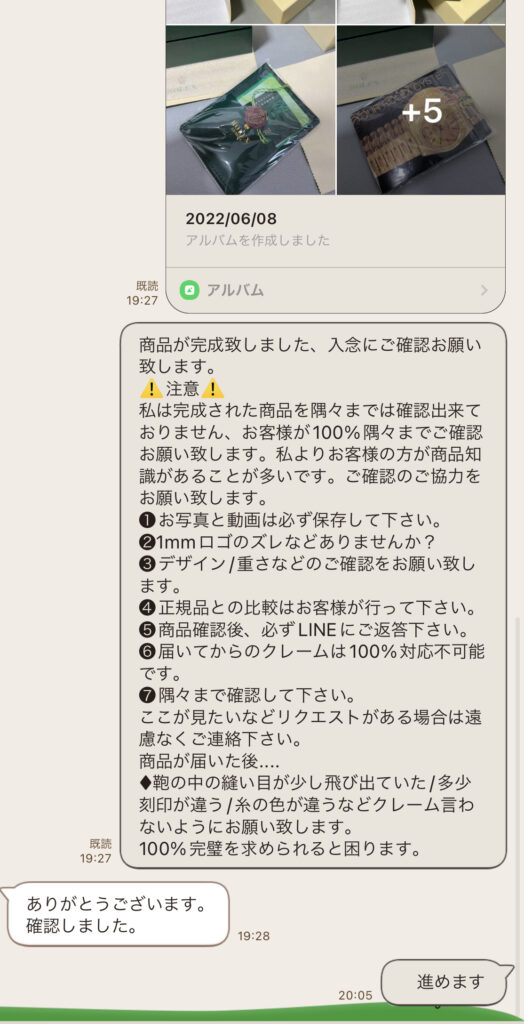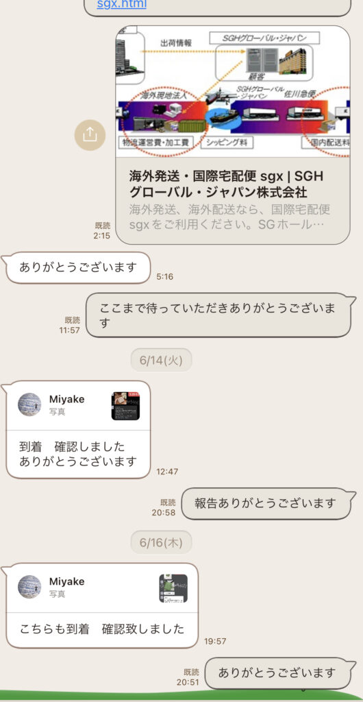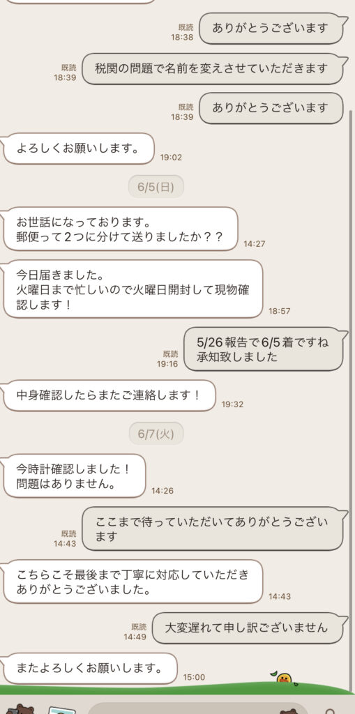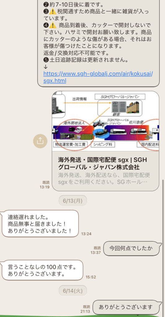 2022.6月『お客様とのやりとり』ラインで お1人様づつ丁寧に取引させていただいてます、参考までにご覧下さい。掲載されている追跡番号で本当に届いているかわかります。ご確認下さい。