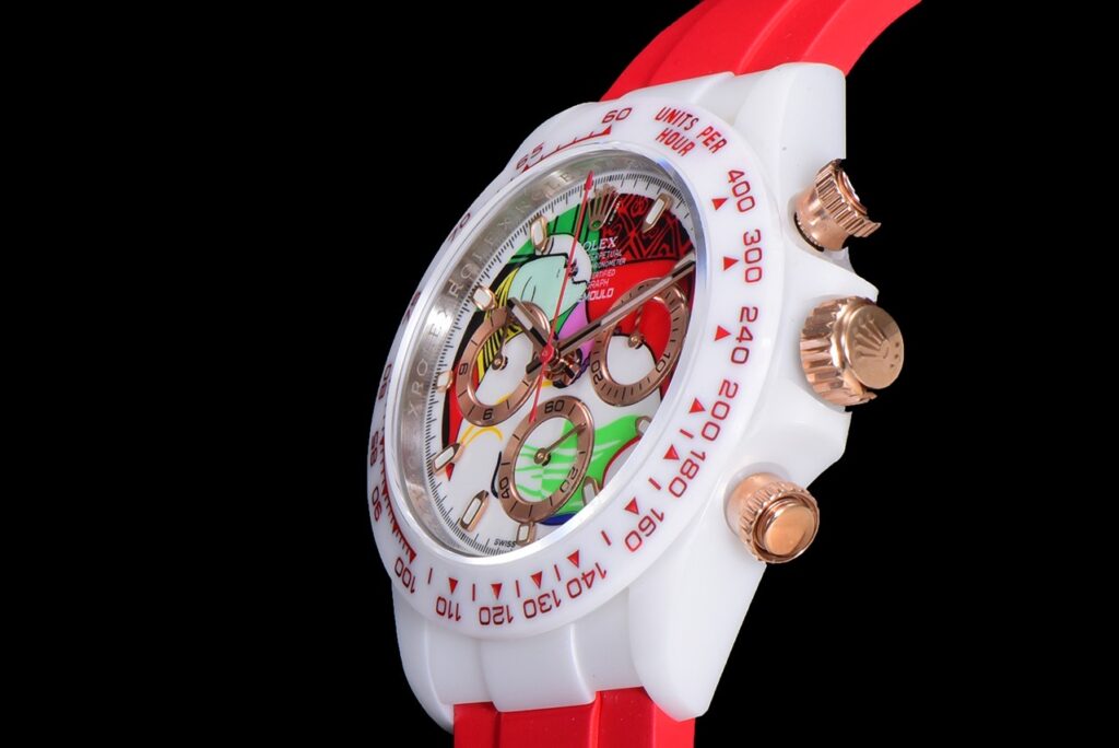 DiW primary goal is to enhance the sportiness of the Rolex Daytona and also focus on new and unique style. We finally determined to hand craft it using the high-end innovation of NTPT carbon fiber for the case, dial and bezel. The result is every DiW Daytona we made has its own unique carbon texture so they do not look the same! Using this material also make our carbon Daytona lightest in the world in less than 50g.