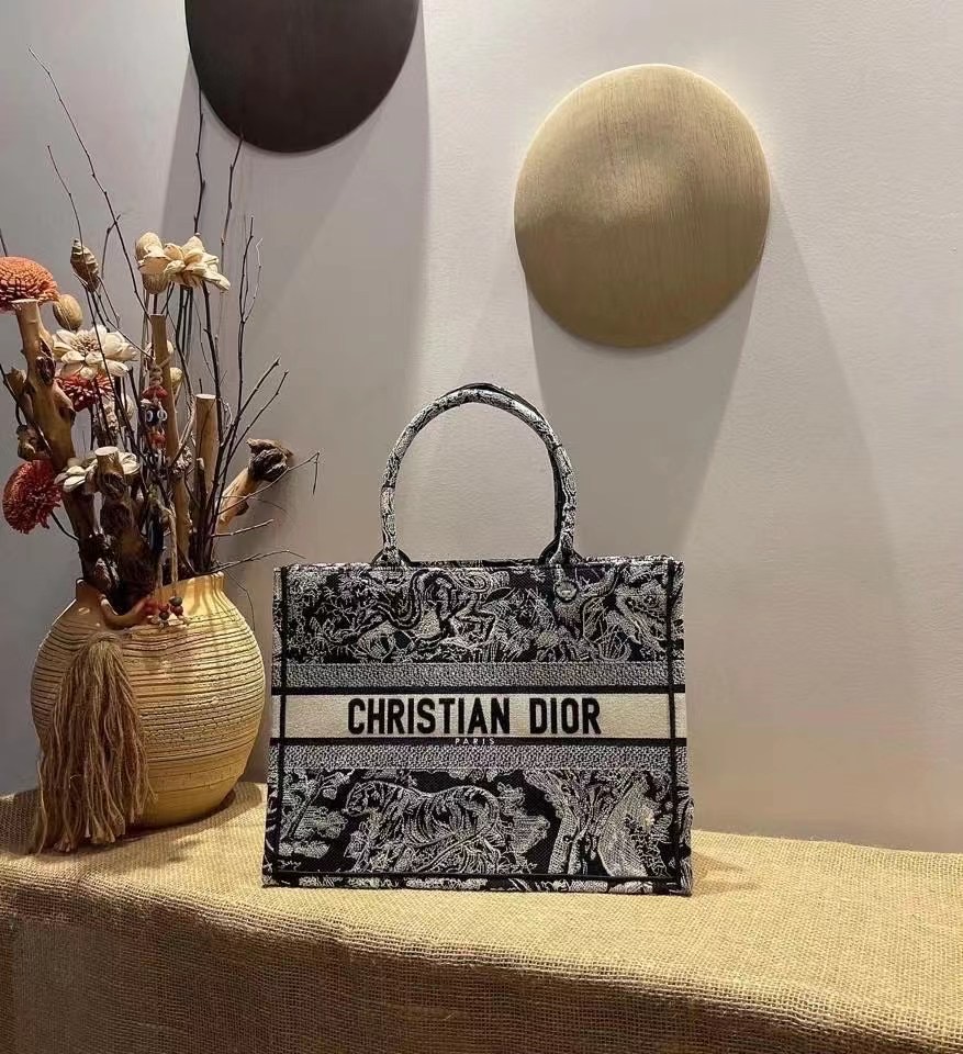 素材は厚手のエンブロイダリーキャンバスで、1967年にマルク・ボアンが制作したグラフィカルパターン「ディオール オブリーク(DIOR OBLIQUE)」を使用したデザインがシグネチャー。クラシカルな雰囲気も漂わせます。