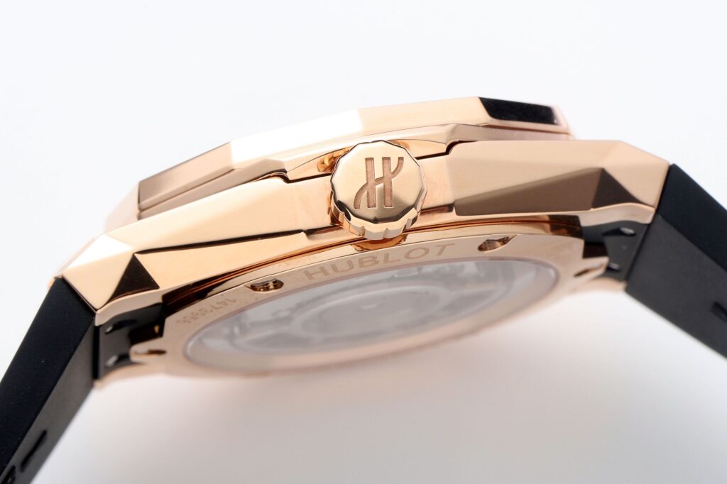 フランス語の舷窓に由来する「ウブロ」は、デザイン性と革新的な素材使いにより、新興メーカーながら、一躍ステータスブランドの仲間入りを果たした。ウォッチメゾンの礎と成した名品のオマージュとして、2008年に投入されたのが「クラシックフュージョン」である。フュージョン(融合)とは原点と現代を繋ぐという意味合いが込められ、クラシックのデザインや風合いを受け継ぎながら、驚くほどモダンにスタイリングされている。継承される共通のアイコンが、ベゼルを固定するためのビス。以前の12本から8本となり、舷窓のイメージは今もしっかりと息づいている。
