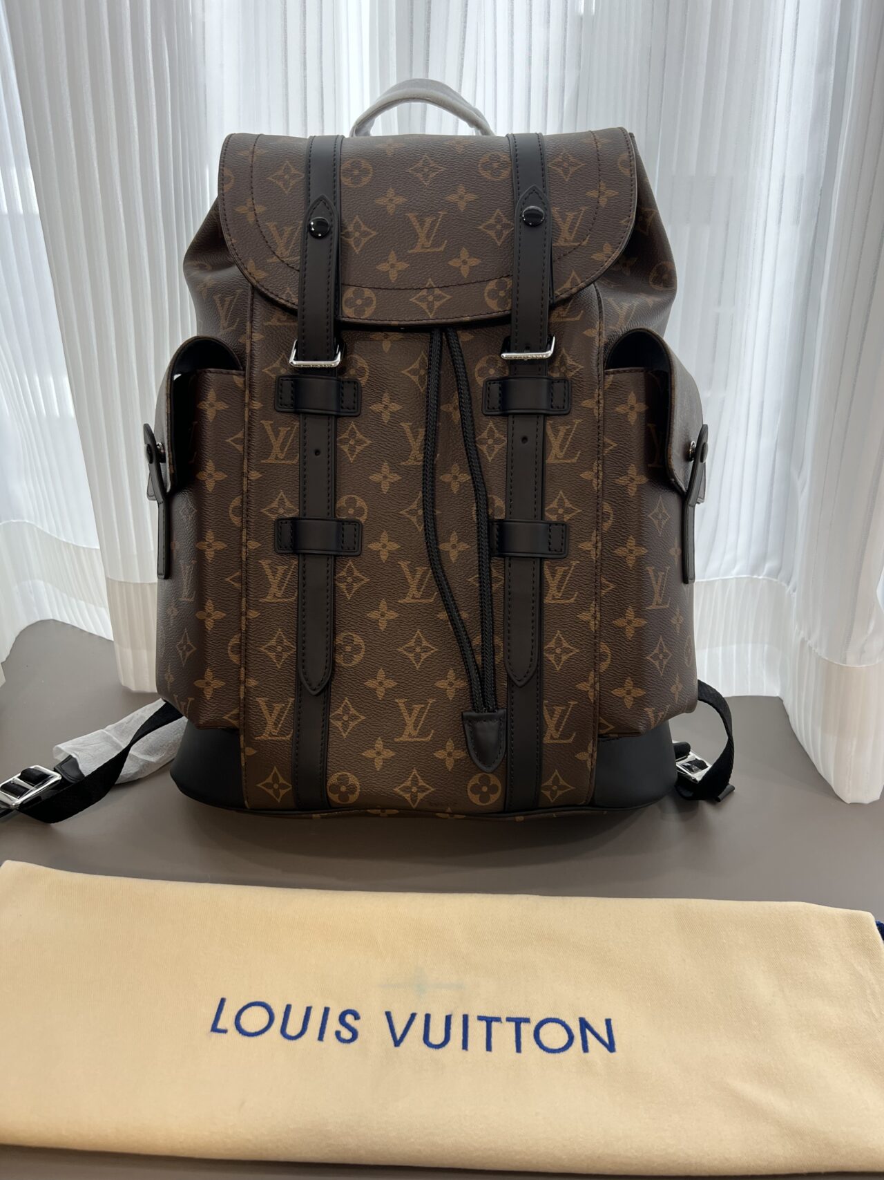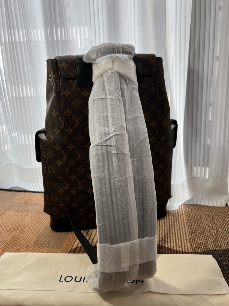 ハイキング・パックのたくましさを感じさせるモノグラム・キャンバスの「クリストファー PM」。