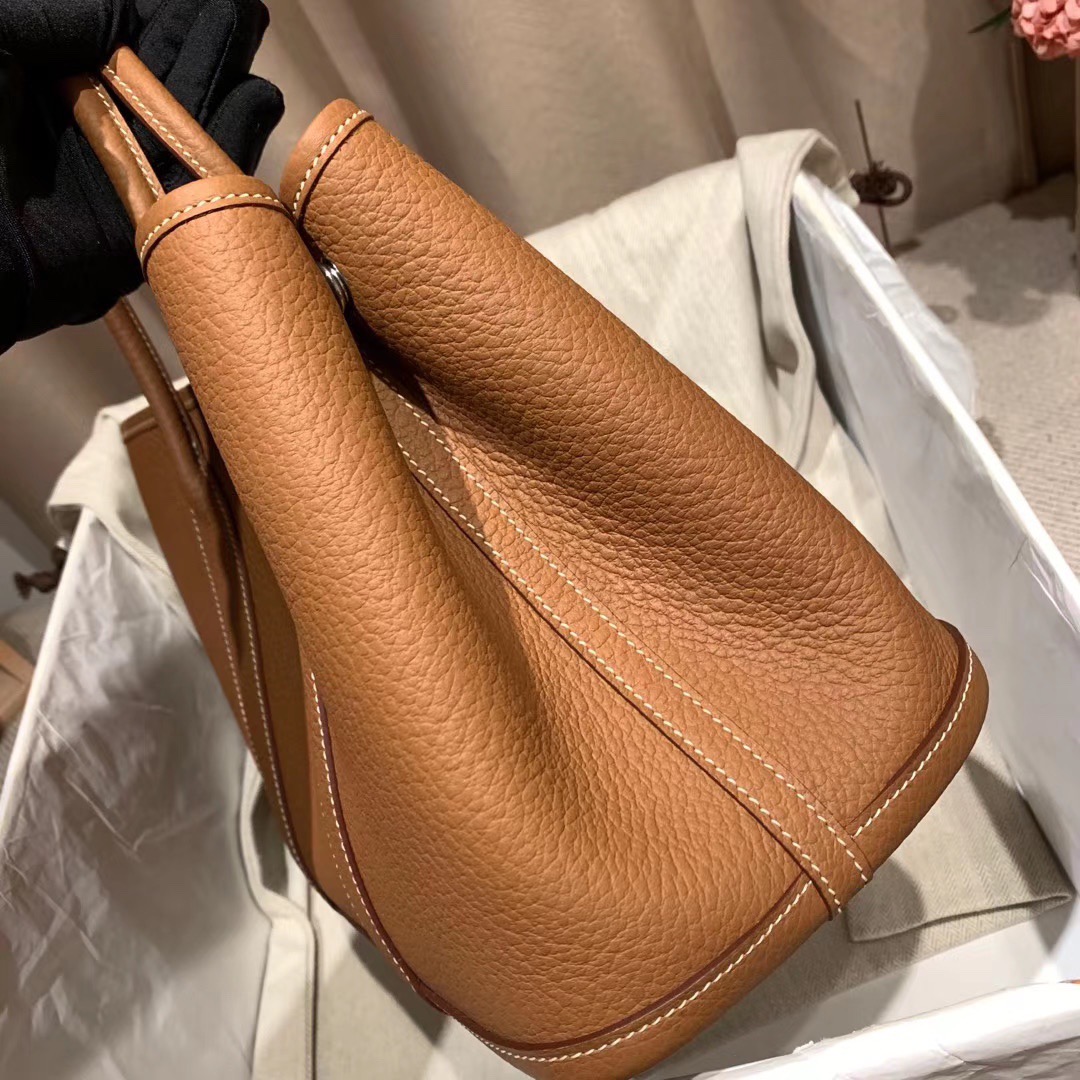エルメス(Hermes)のガーデンパーティは、もともと園芸に使う剪定バサミやスコップなどの園芸用品を収納して持ち運ぶためにデザインされたバッグ。 見た目はシンプルなトートバッグ型ですが、上よりも下のマチ部分が少し大きめになっている台形のフォルムがフェミニンで、やわらかい印象を与えます。