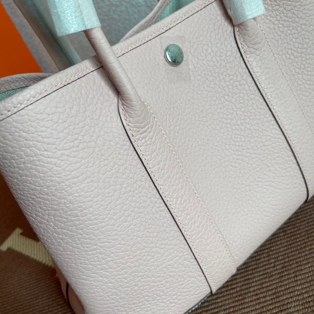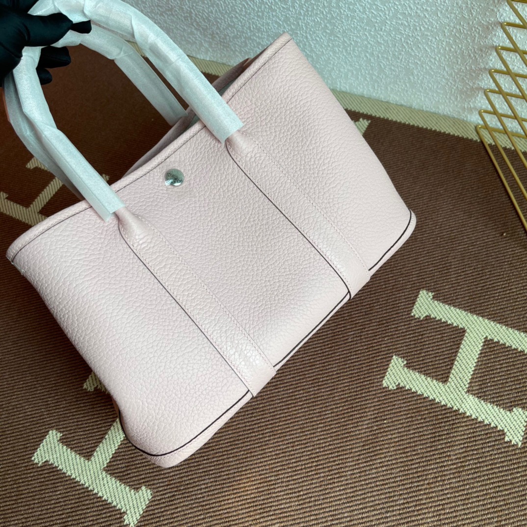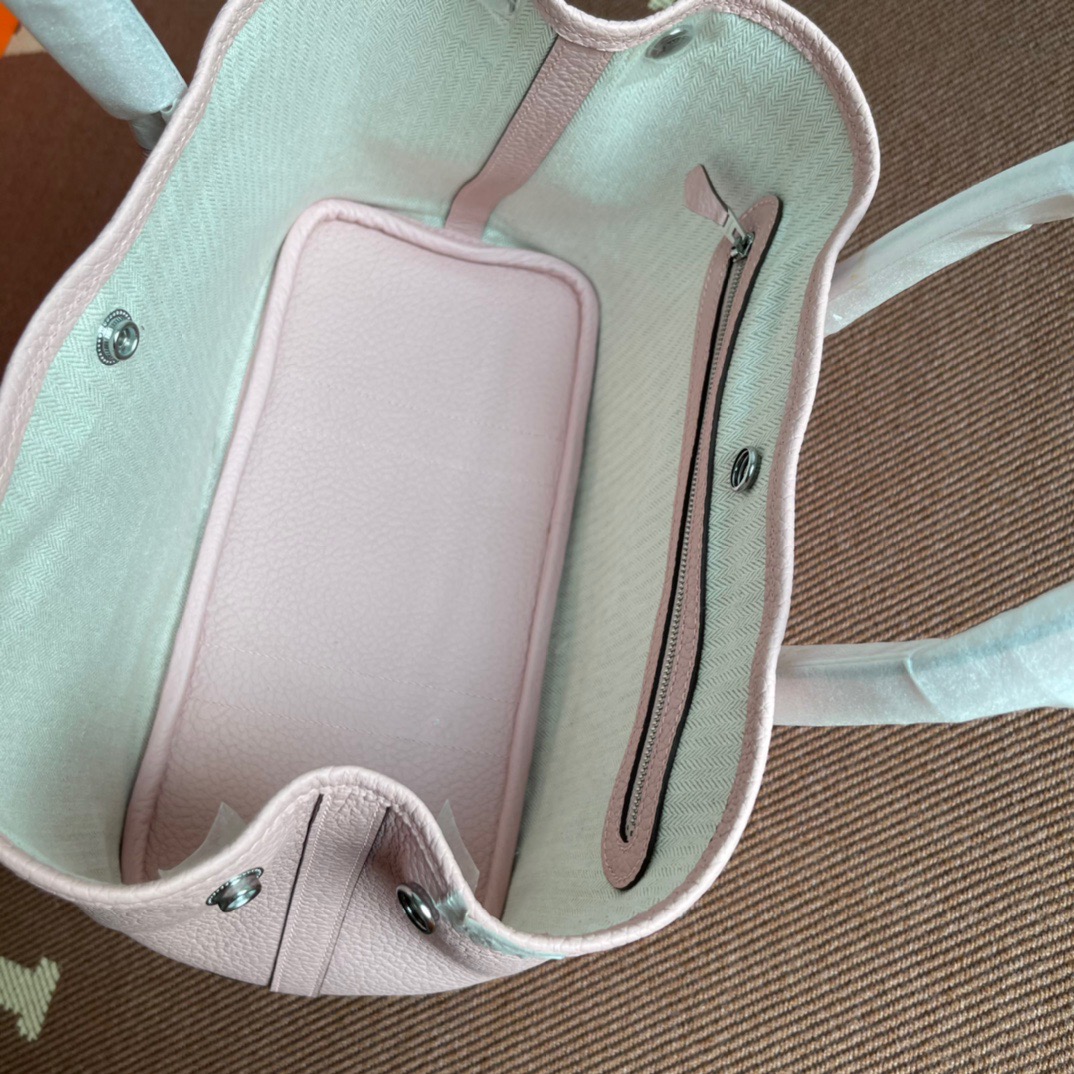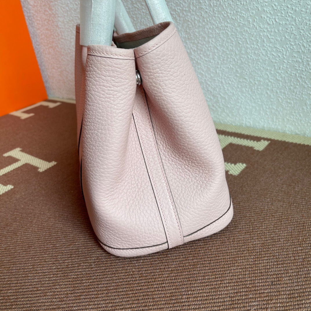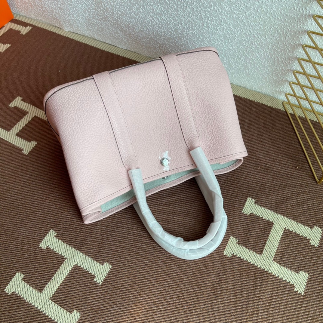 エルメス(Hermes)のガーデンパーティは、もともと園芸に使う剪定バサミやスコップなどの園芸用品を収納して持ち運ぶためにデザインされたバッグ。 見た目はシンプルなトートバッグ型ですが、上よりも下のマチ部分が少し大きめになっている台形のフォルムがフェミニンで、やわらかい印象を与えます。