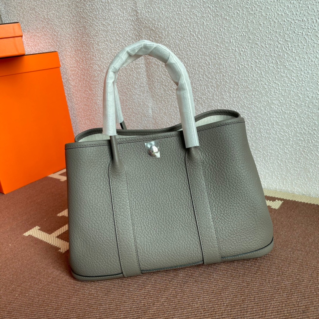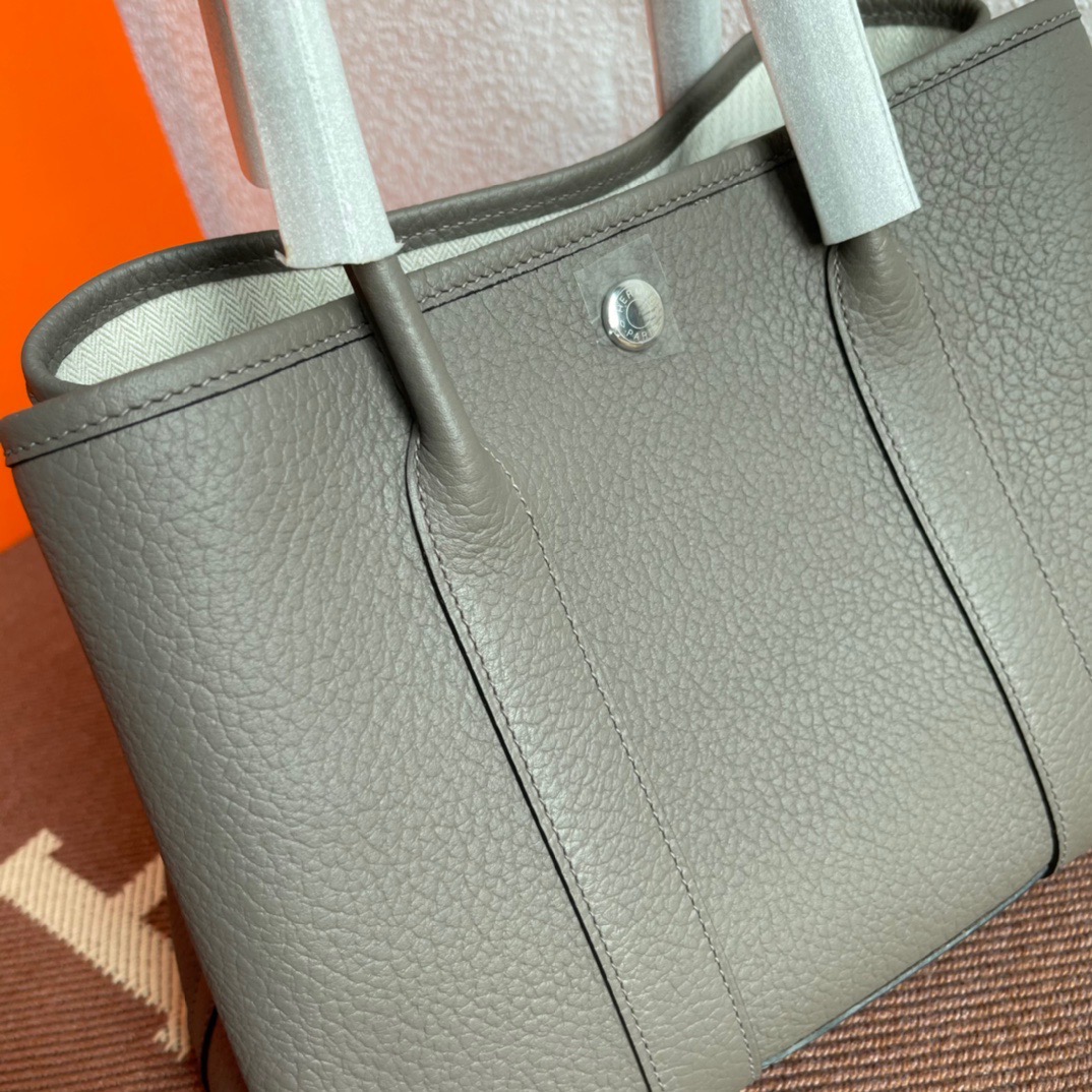 エルメス(Hermes)のガーデンパーティは、もともと園芸に使う剪定バサミやスコップなどの園芸用品を収納して持ち運ぶためにデザインされたバッグ。 見た目はシンプルなトートバッグ型ですが、上よりも下のマチ部分が少し大きめになっている台形のフォルムがフェミニンで、やわらかい印象を与えます。