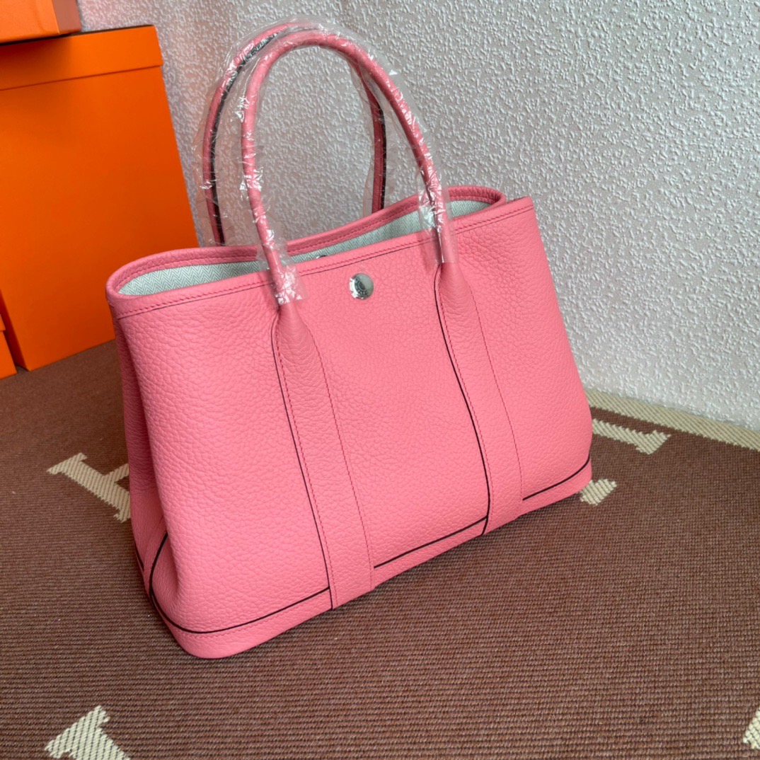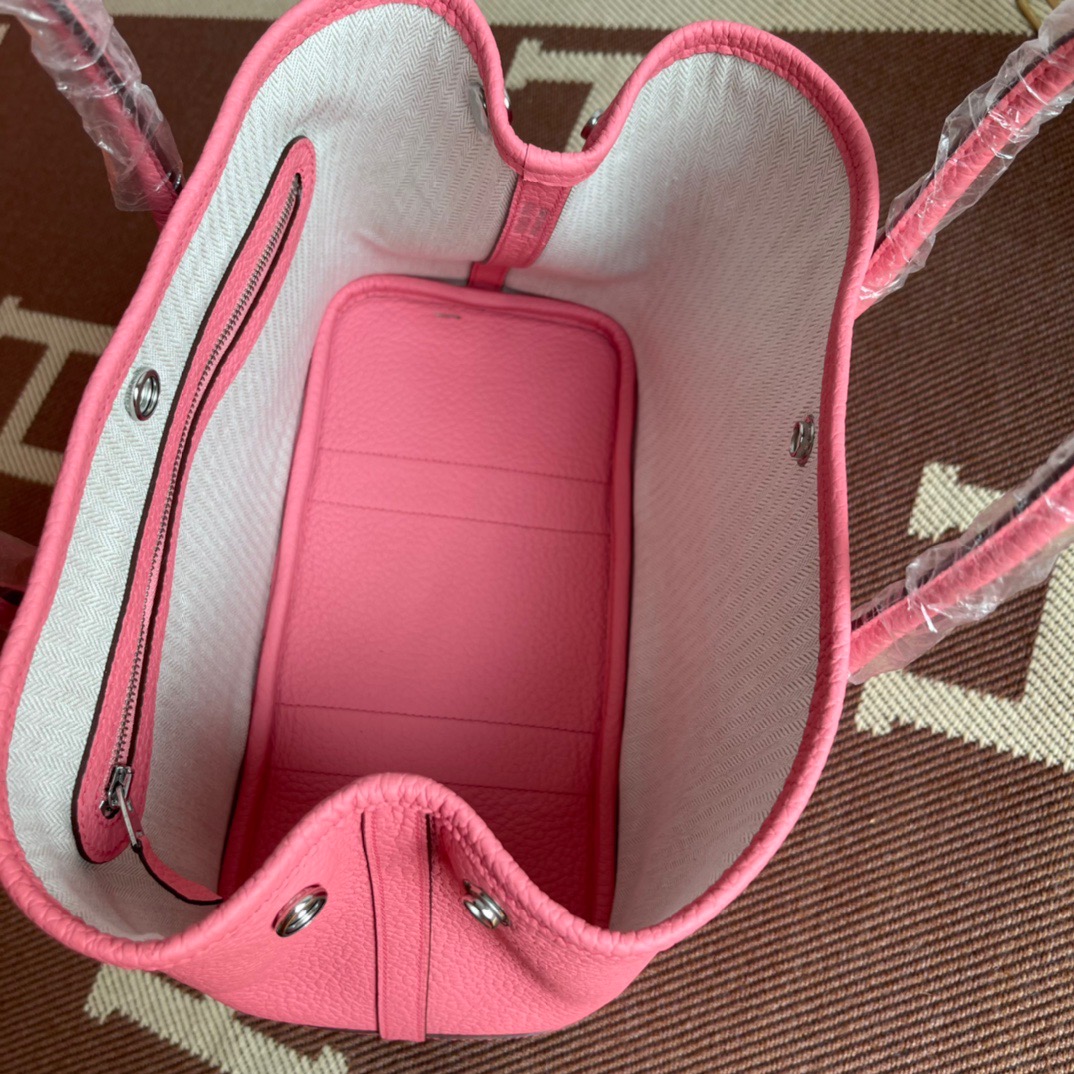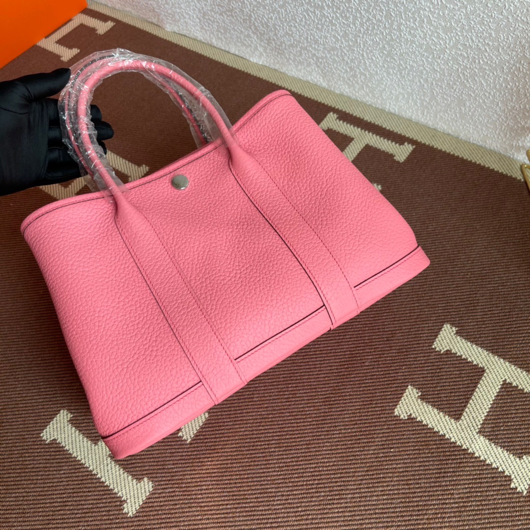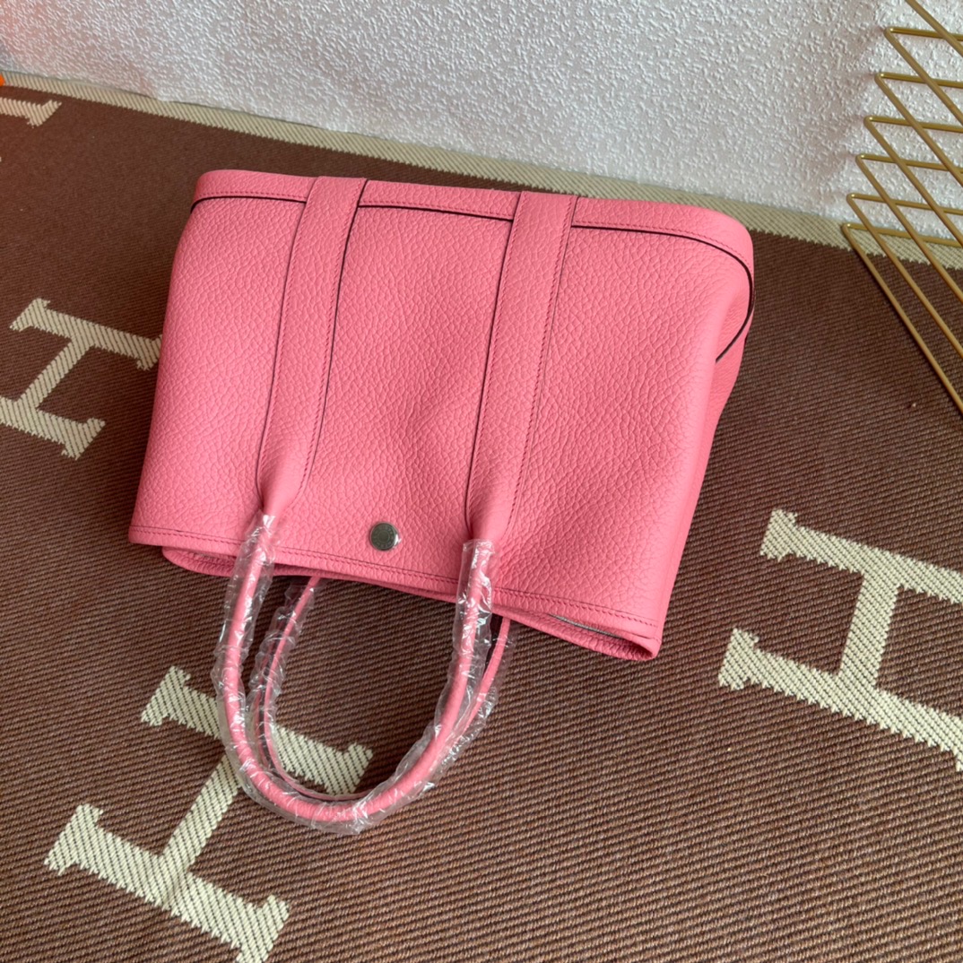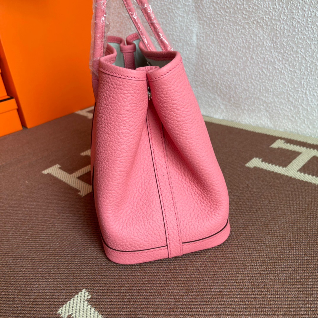 エルメス(Hermes)のガーデンパーティは、もともと園芸に使う剪定バサミやスコップなどの園芸用品を収納して持ち運ぶためにデザインされたバッグ。 見た目はシンプルなトートバッグ型ですが、上よりも下のマチ部分が少し大きめになっている台形のフォルムがフェミニンで、やわらかい印象を与えます。