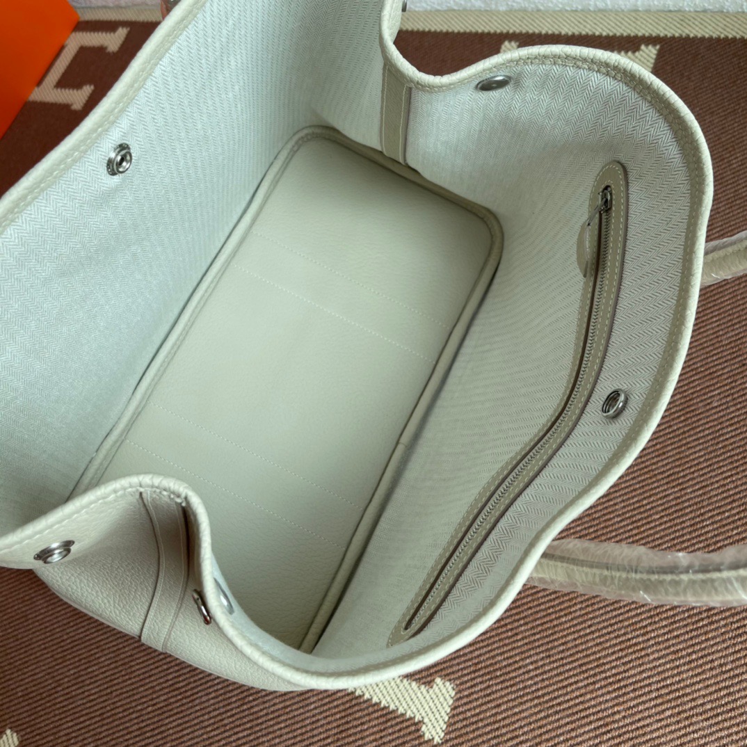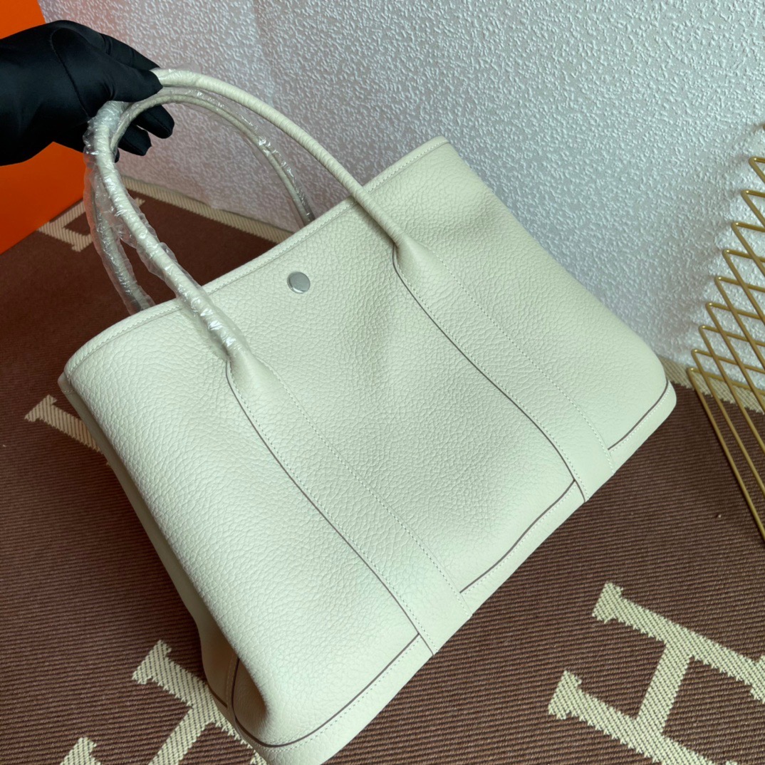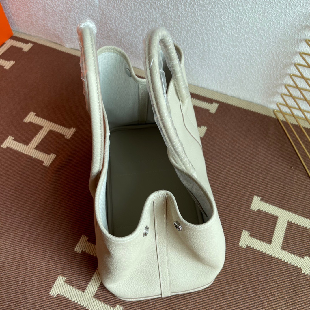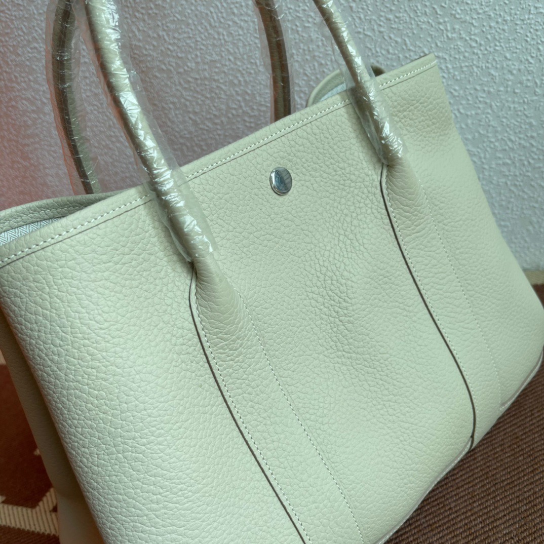 エルメス(Hermes)のガーデンパーティは、もともと園芸に使う剪定バサミやスコップなどの園芸用品を収納して持ち運ぶためにデザインされたバッグ。 見た目はシンプルなトートバッグ型ですが、上よりも下のマチ部分が少し大きめになっている台形のフォルムがフェミニンで、やわらかい印象を与えます。