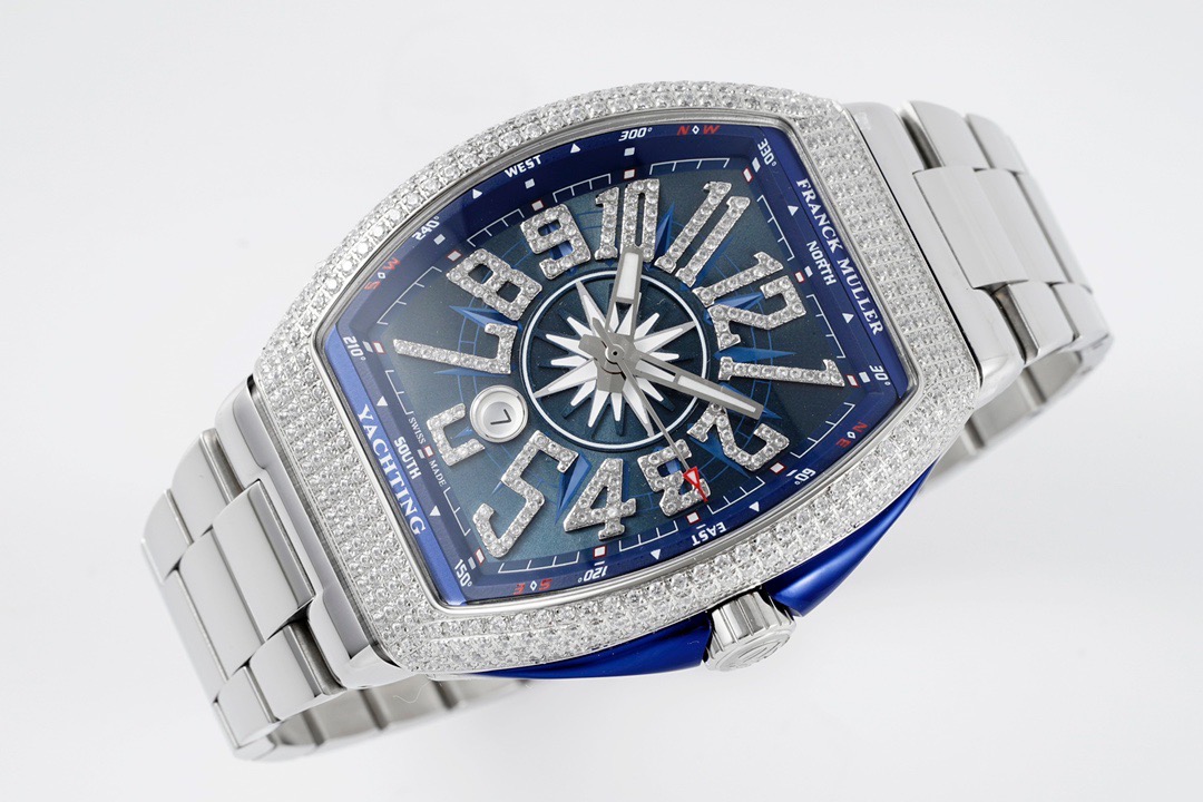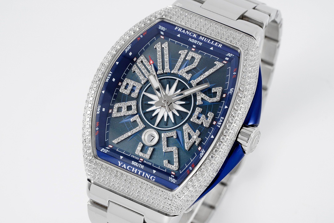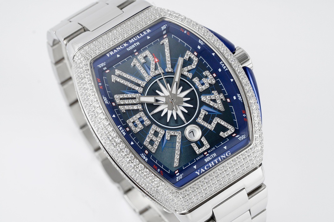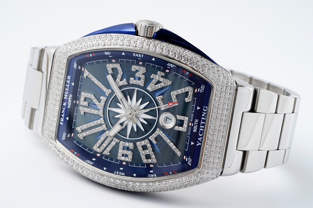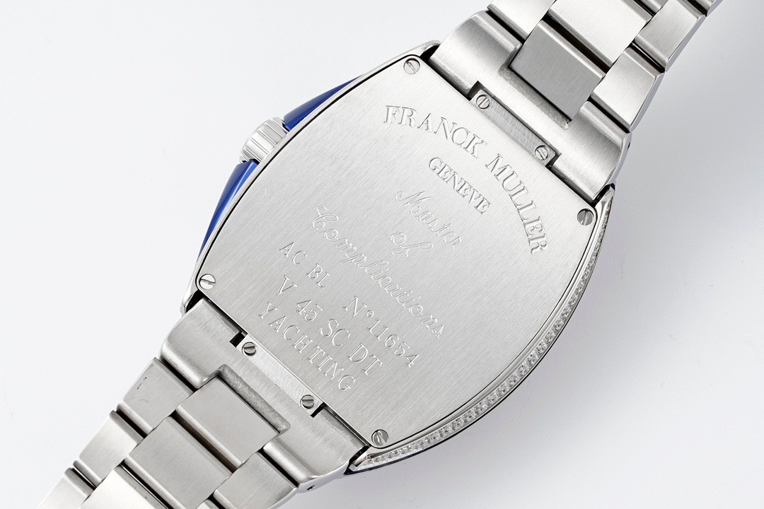「フランクミュラー ヴァンガード」の特徴2014年にラインナップに加わった新しいスタンダードコレクション「ヴァンガード」。 優雅に主張する曲線が魅力的なケースは、他のフランクミュラーとは異なり、ラグを無くしてストラップ接続部を内蔵して丸みを帯びた独特な一体型フォルムを採用。