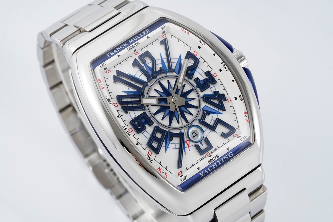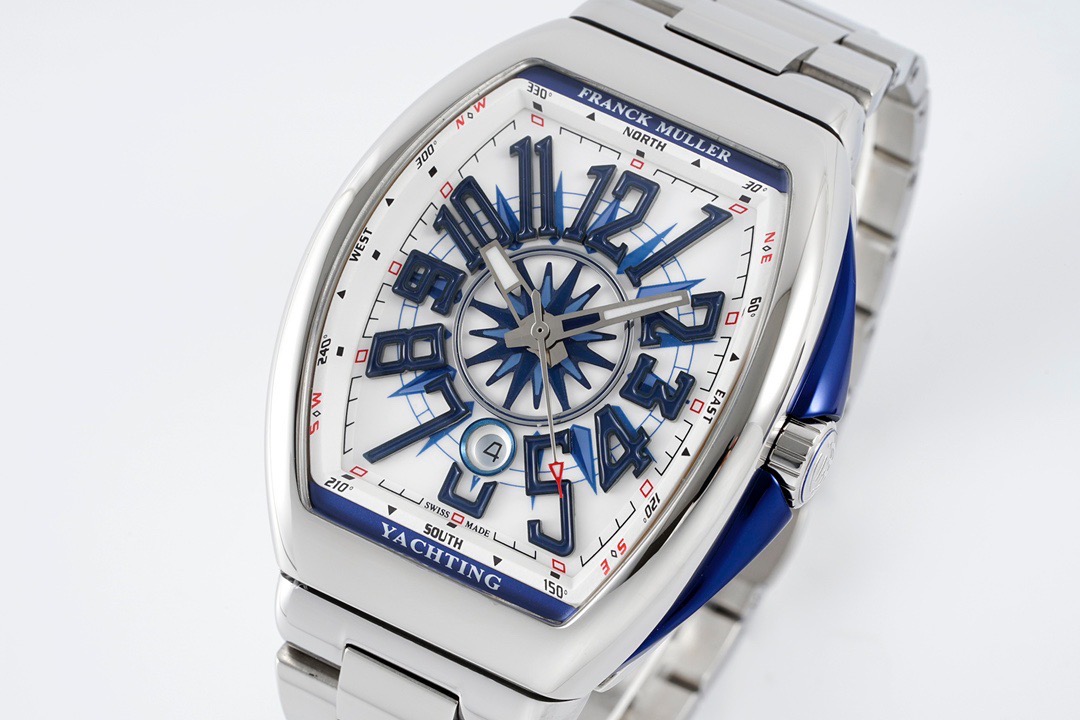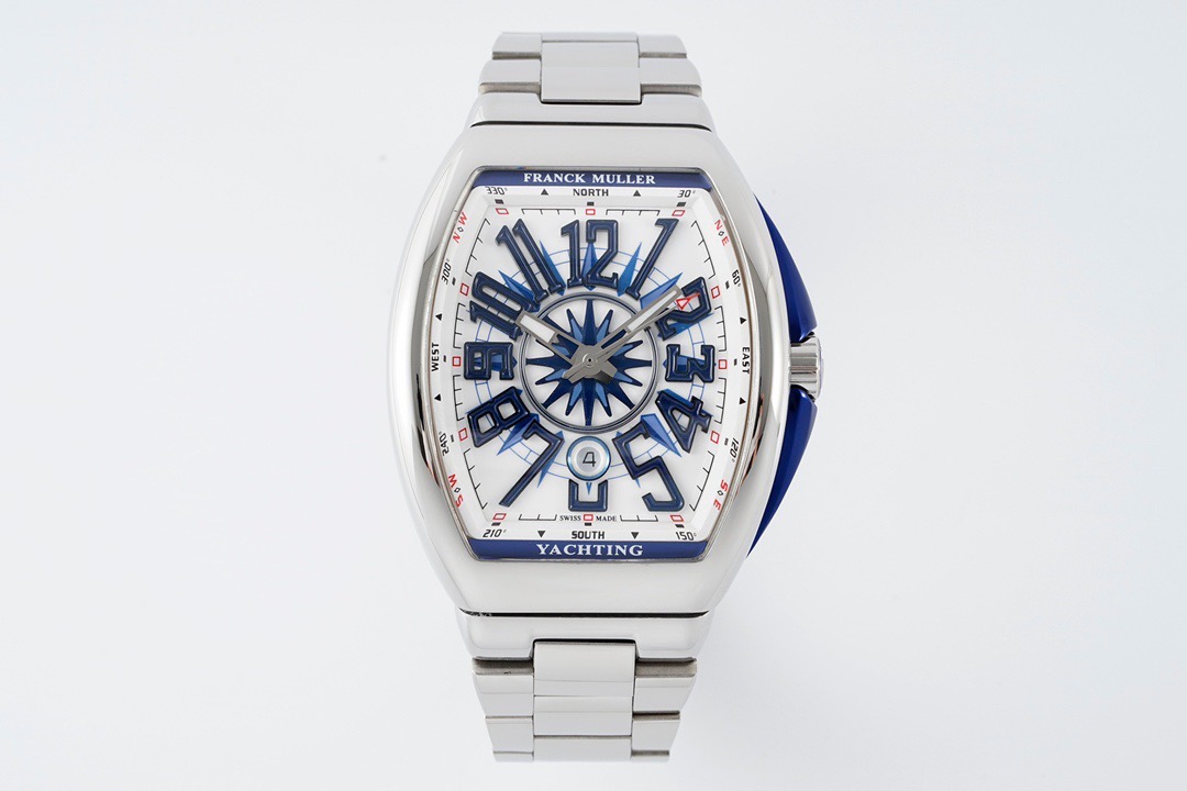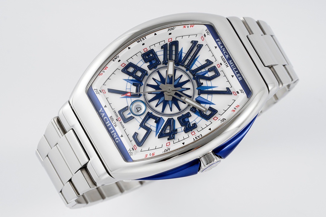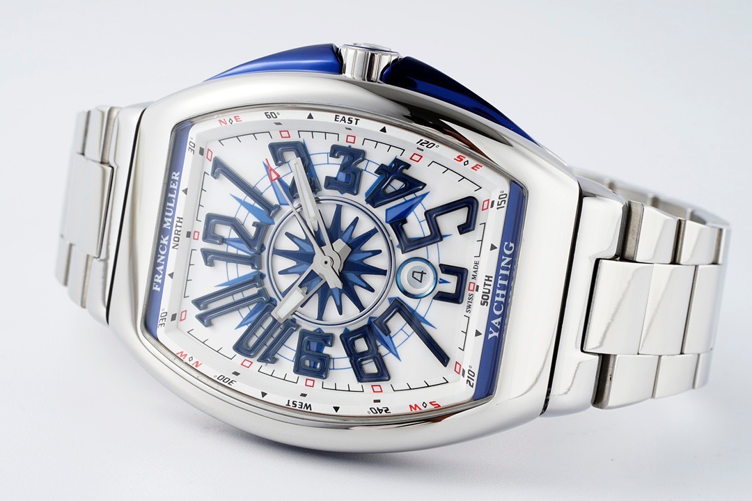 「フランクミュラー ヴァンガード」の特徴2014年にラインナップに加わった新しいスタンダードコレクション「ヴァンガード」。 優雅に主張する曲線が魅力的なケースは、他のフランクミュラーとは異なり、ラグを無くしてストラップ接続部を内蔵して丸みを帯びた独特な一体型フォルムを採用。