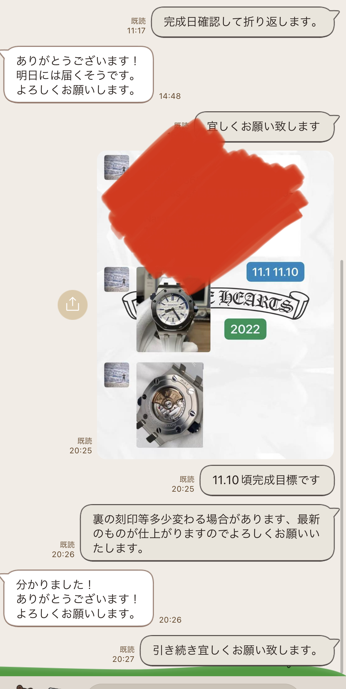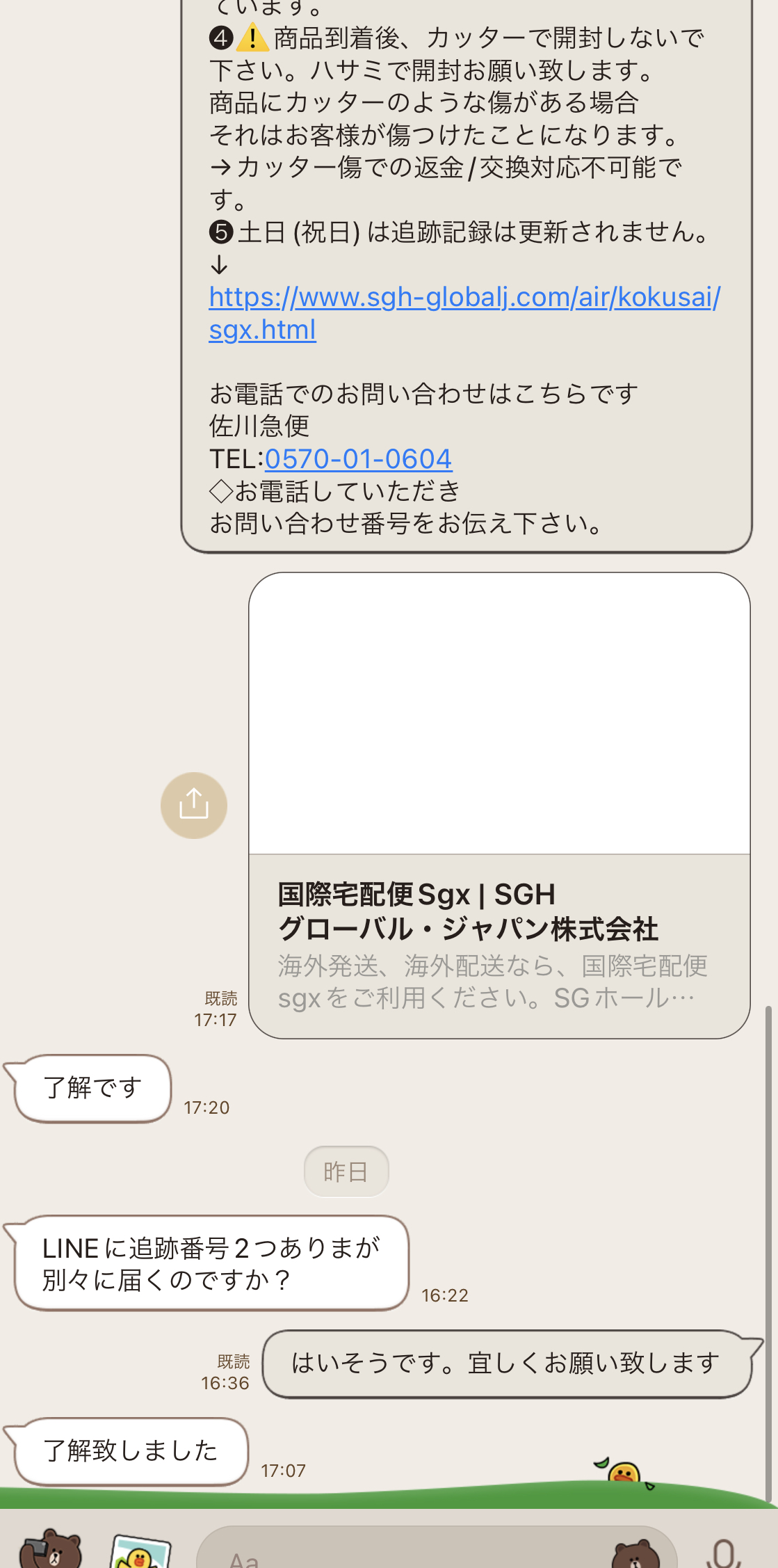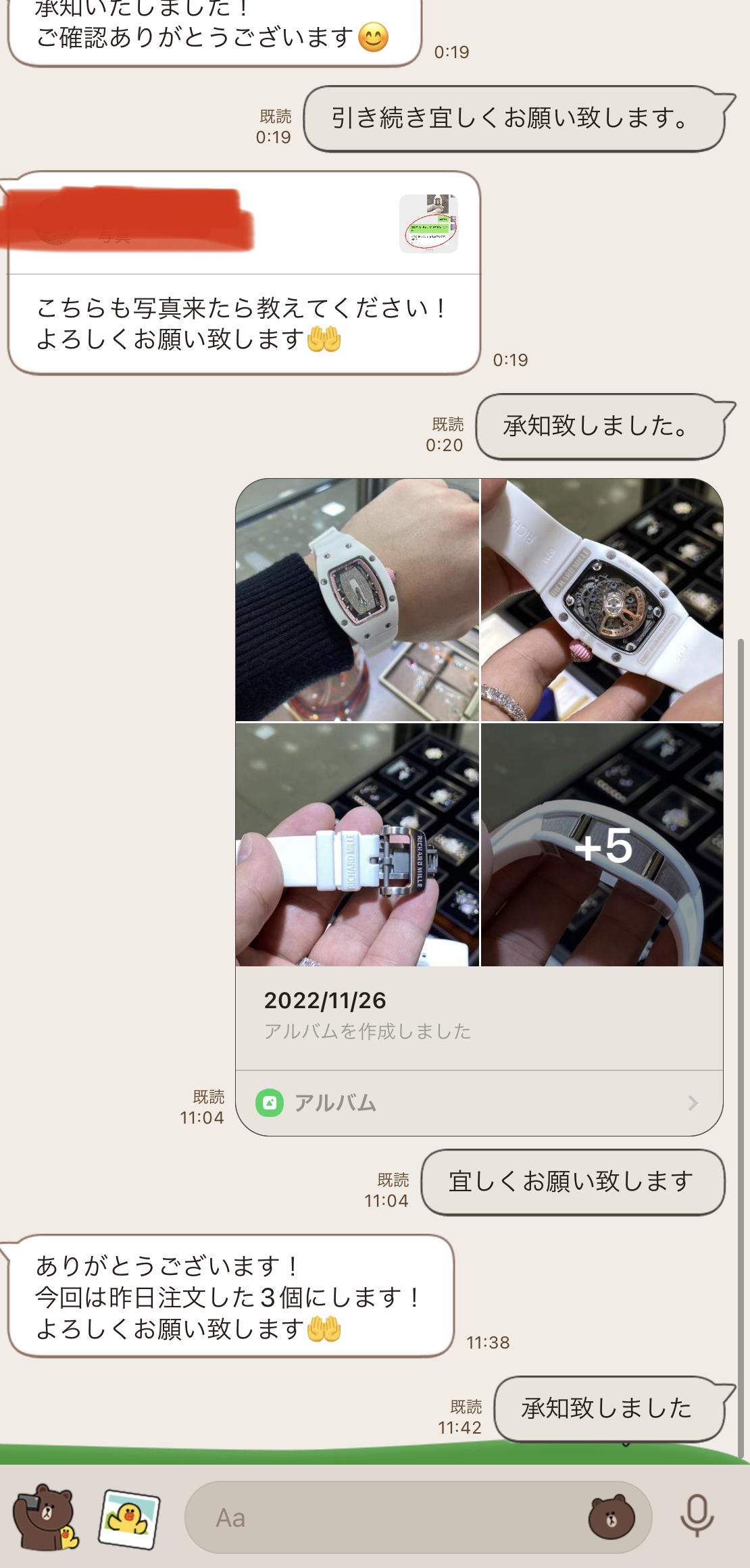 2022.11月『お客様とのやりとり』ラインで お1人様づつ丁寧に取引させていただいております、掲載されている追跡番号で本当に届いているかなどご確認できます。