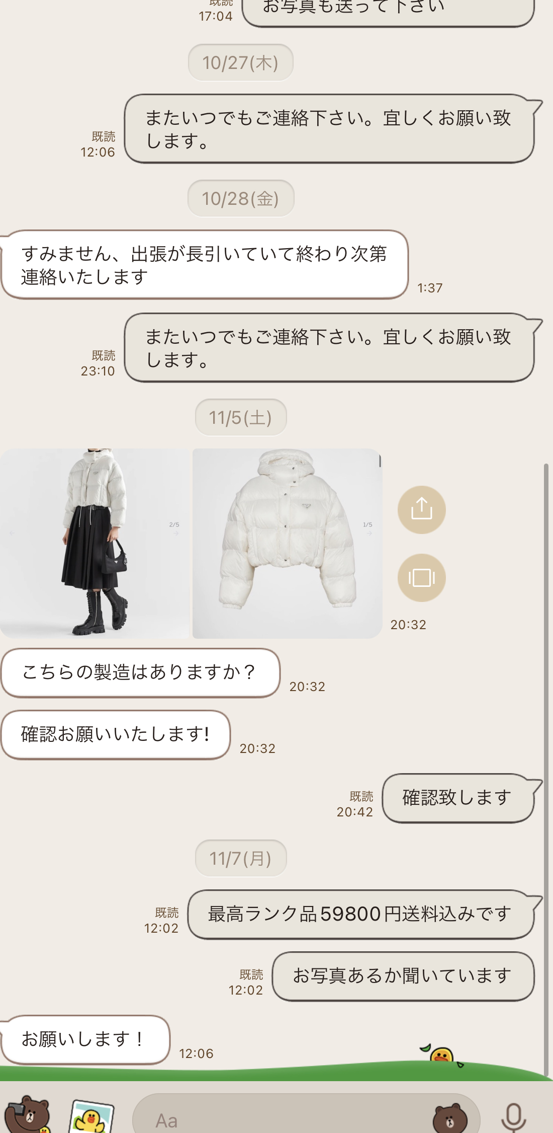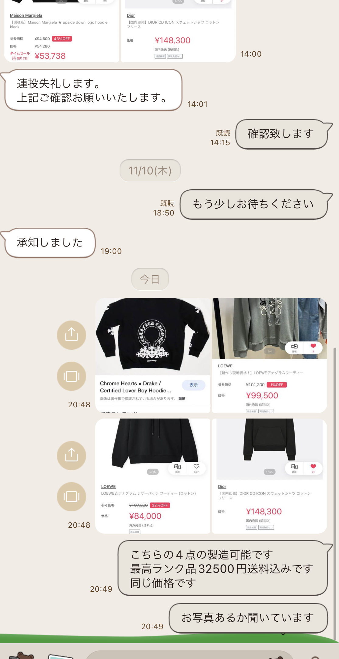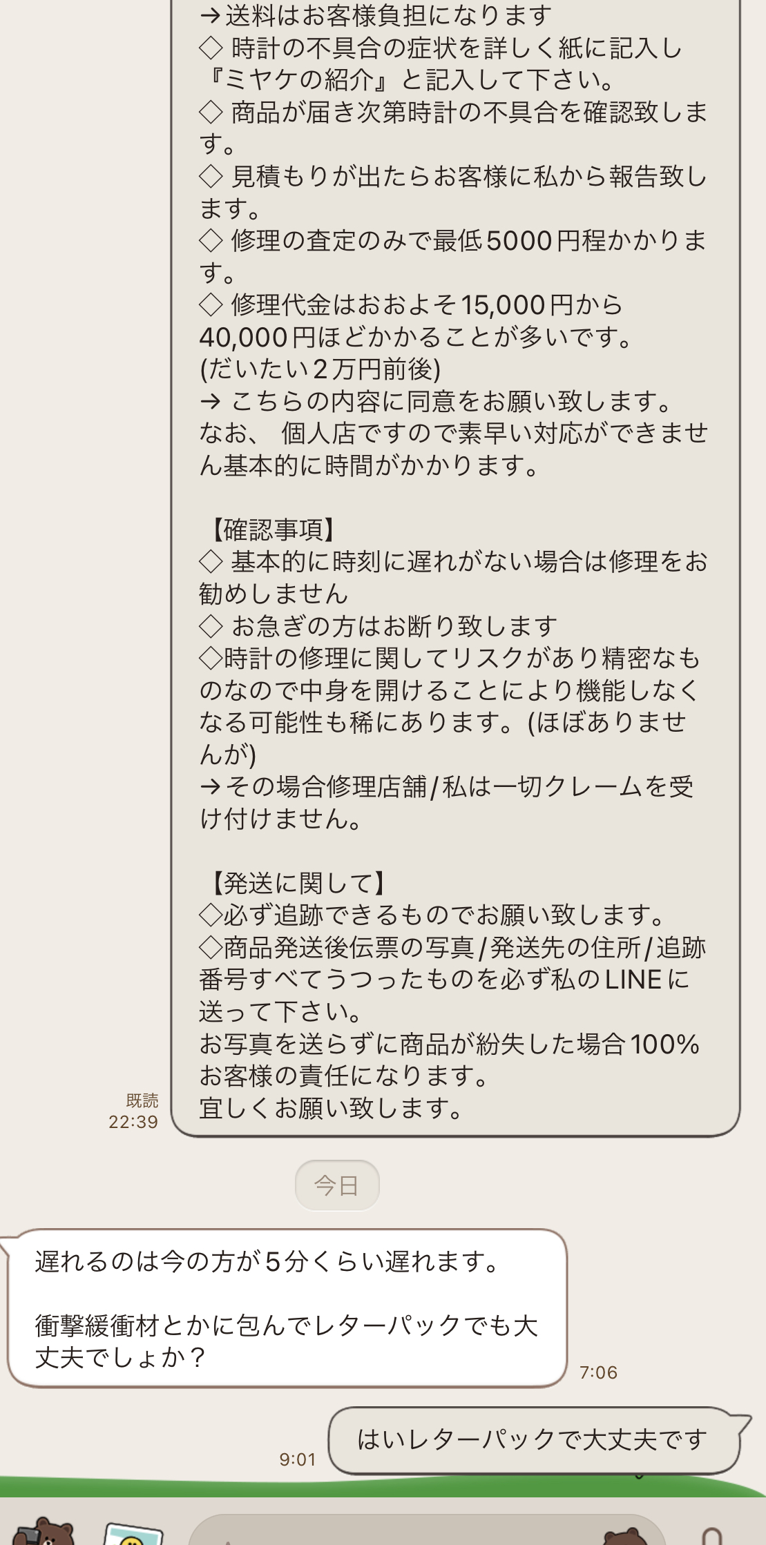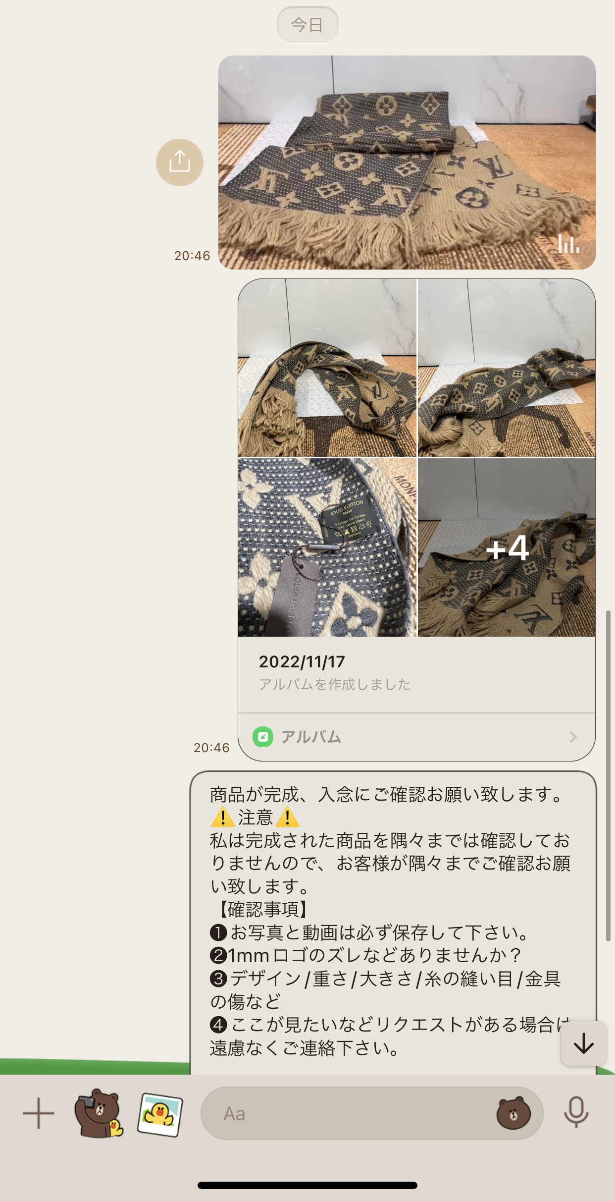 2022.11月『お客様とのやりとり』ラインで お1人様づつ丁寧に取引させていただいております、掲載されている追跡番号で本当に届いているかなどご確認できます。