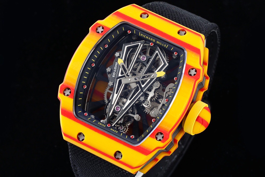 リシャール・ミルは2001年フランス人のリシャール・ミル氏、自身の名前で創業したスイスの高級腕時計ブランドです。グラフTPTなどF1や航空宇宙産業で使われる最先端素材と技術を導入、進化し続け、軽量かつスポーティで頑丈な機械式腕時計として世間に旋風を巻き起こしました。全ての時計のコンセプトを生み出したリシャール・ミルは、妥協と見せかけの巧を排除し、「究極」、「時代を先取」、「ハイテク」の息を時計の中に吹込み、その感性に謳える魅力はトッププレヤーやセレブ達の間で瞬く間に広がりました。特殊部品を多数使用し、コストと手間を惜しまず、全ての限定生産のため、入手困難であります。超複雑精密機械でありながら、激しい衝撃も耐えられる素晴らしい機能を持ち、設立後わずか10年余りで高級腕時計の最高峰に登り詰めたブランドです。