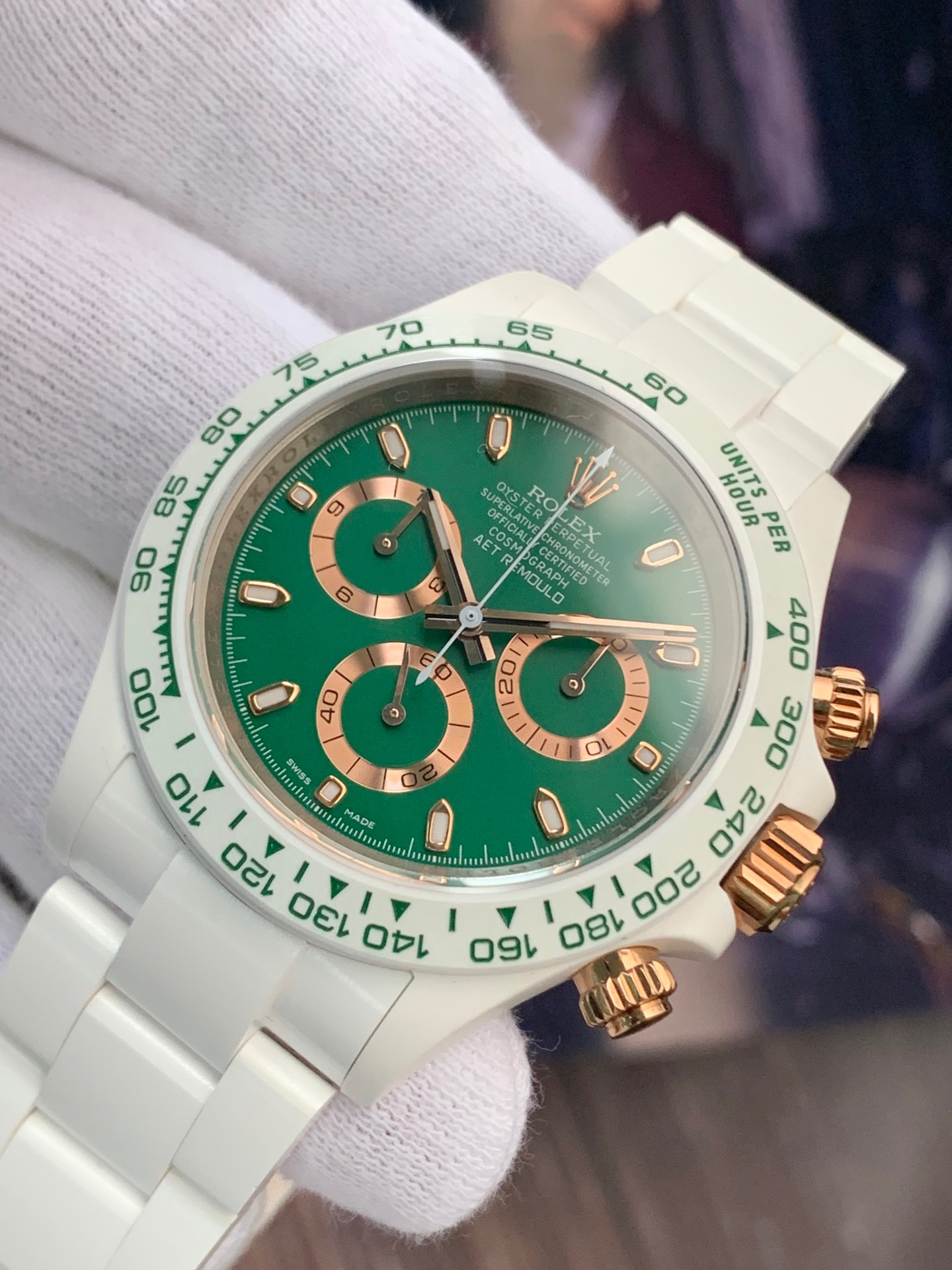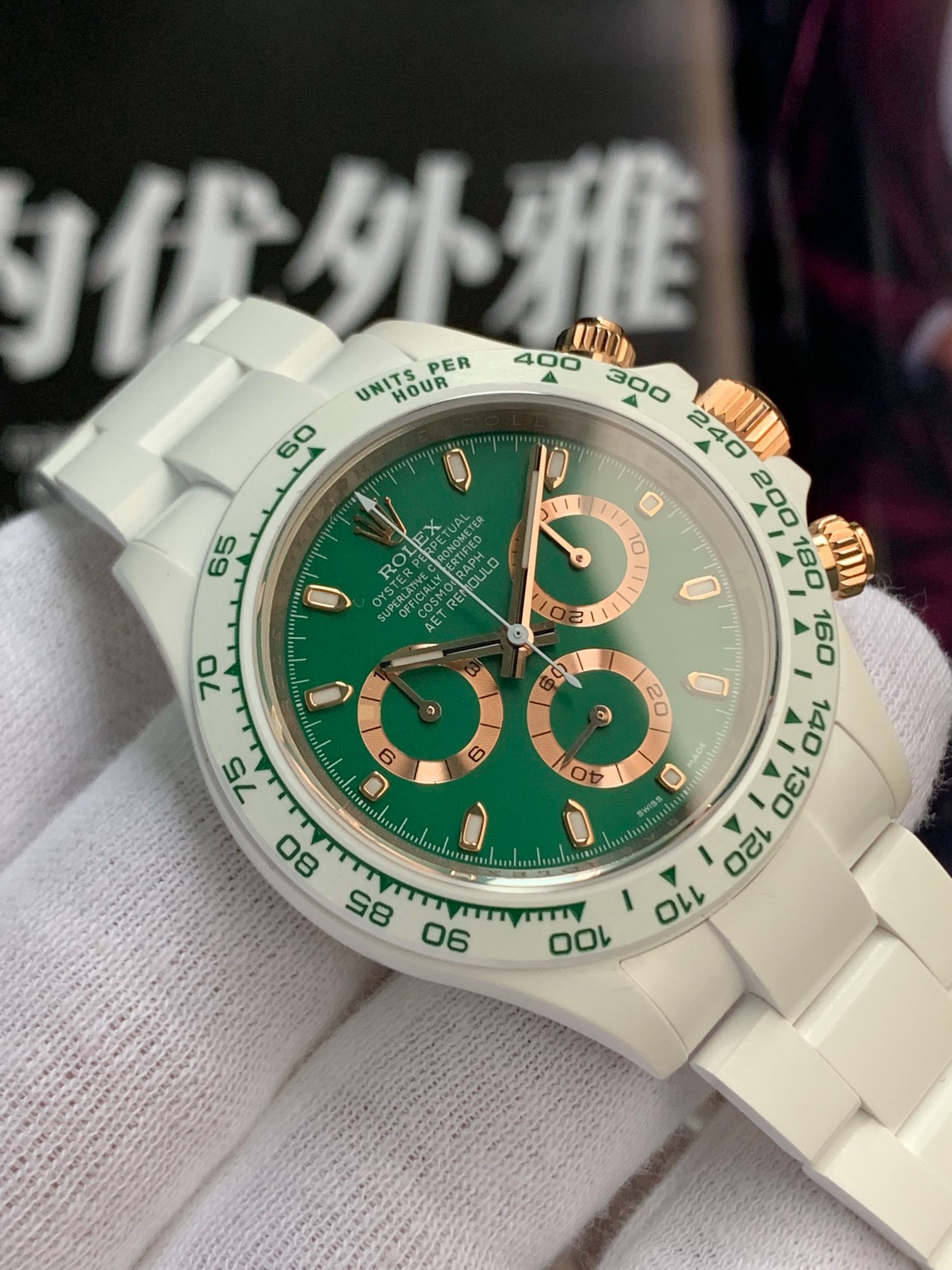 DiWの主な目標は、ロレックスデイトナのスポーティさを高め、新しいユニークなスタイルに焦点を当てることです。 最終的に、ケース、ダイヤル、ベゼルにNTPTカーボンファイバーのハイエンドイノベーションを使用して手作りすることを決定しました。 その結果、私たちが作成したすべてのDiW Daytonaは、独自のカーボンテクスチャを備えているため、同じようには見えません。 この素材を使用することで、カーボンデイトナは50g未満で世界最軽量になります。