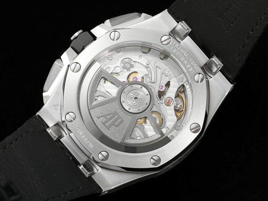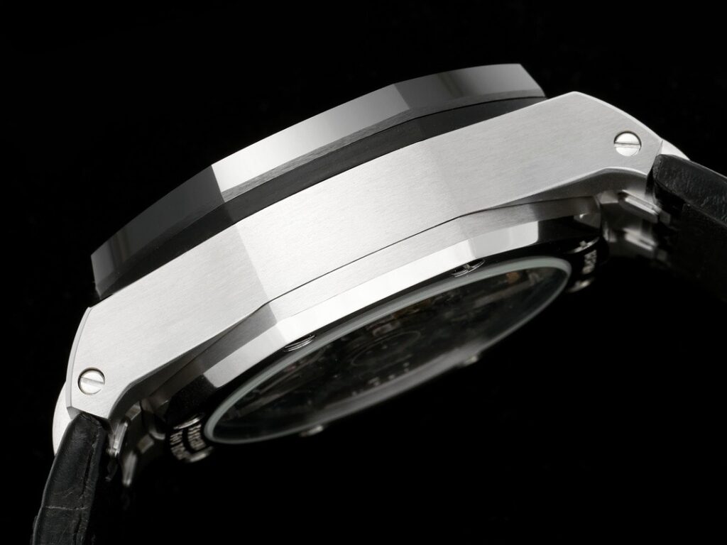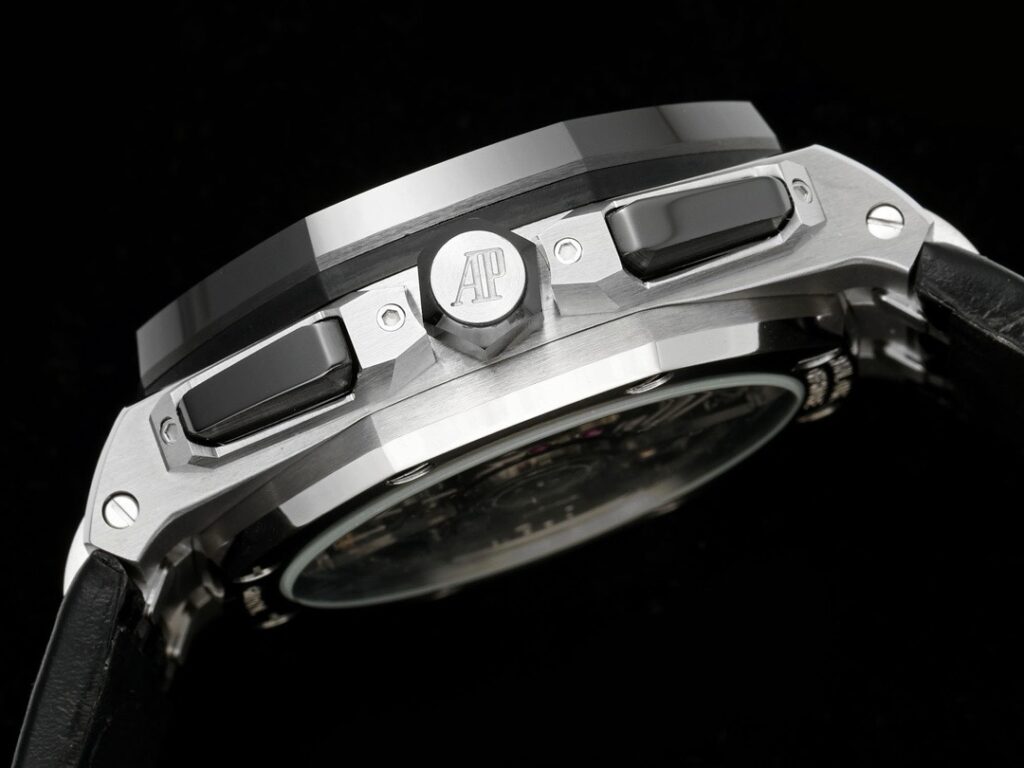 1. 新たに開発された43mmのケース(市場のバージョンは44mmで、旧型26400のケースを使用しています)は、新しいデザインで、人間工学に基づいたより洗練されたケースの詳細を採用しています。これには、より大きな研磨されたベベルがあり、43mm幅のケースは新しいムーブメントを収めるために注意深く修飾されています。ケース内には、新しく設計されたクロノグラフボタンが装備されています。