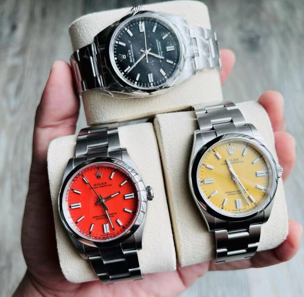 ロレックスオイスターパーペチュアルは、スイスの高級時計メーカー、ロレックスによって製造されている時計のモデルです。このモデルはロレックスのエントリーレベルのコレクションに位置づけられ、シンプルながら洗練されたデザインが特徴です。オイスターパーペチュアルは、その名の通り、「オイスター」という防水ケースと、「パーペチュアル」という自動巻き機構を持っています。「オイスター」ケースは、1926年にロレックスによって開発された、世界初の防水腕時計ケースであり、強固な構造が特徴です。一方で、「パーペチュアル」は、1931年に開発された自動巻き機構で、腕の動きを利用して時計を巻き上げるシステムです。オイスターパーペチュアルは、その機能性と時代を超えたデザインで知られており、男女問わず多くの人々に愛されています。サイズやカラーバリエーションも豊富で、カジュアルからフォーマルまで幅広いシーンで使用できるのが魅力です。