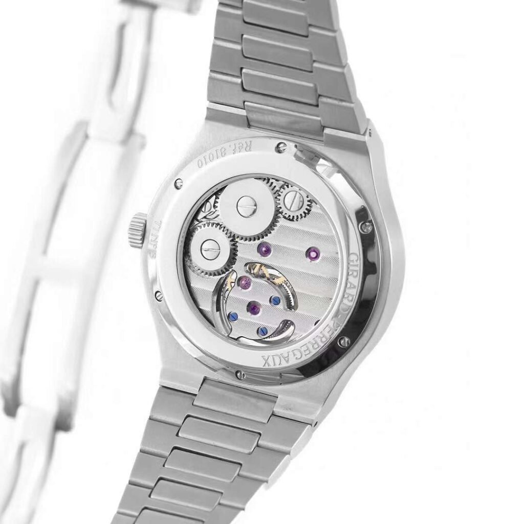 - ジラール・ペルゴは、自社製のムーブメントを開発・製造しており、ロレアート トゥールビヨンにもこの技術が活かされています。高精度なムーブメントにより、信頼性と耐久性が高まっています。